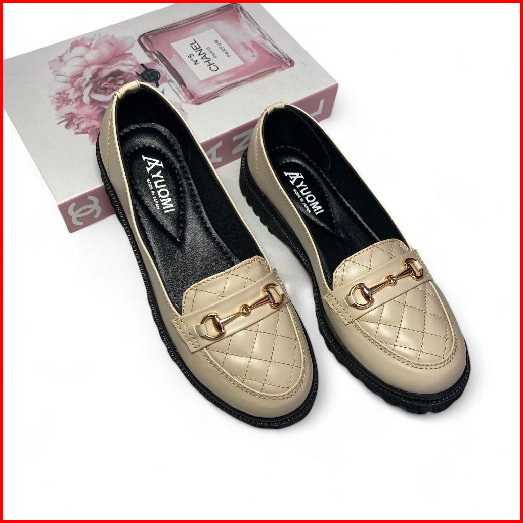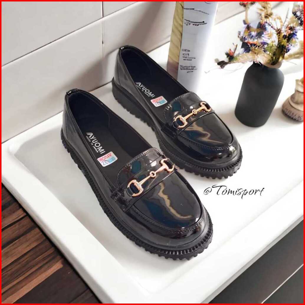 Yuomi Sepatu Loafers Docmart Wanita Kasual Premium Quality Hitam Kekinian Gaya Korea