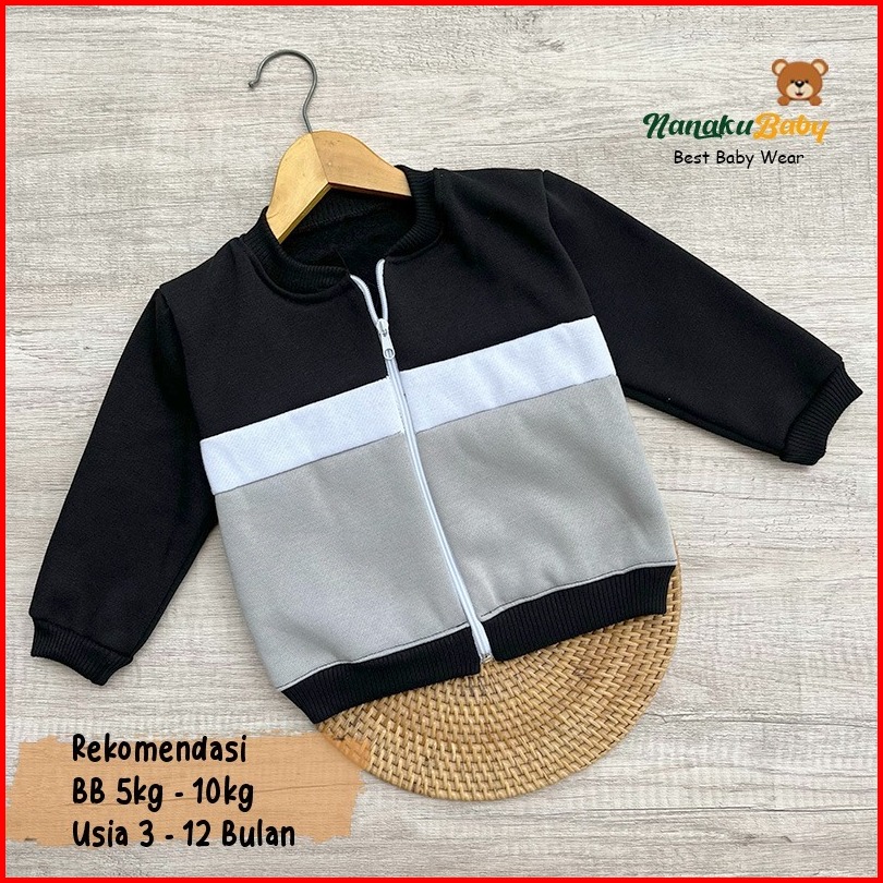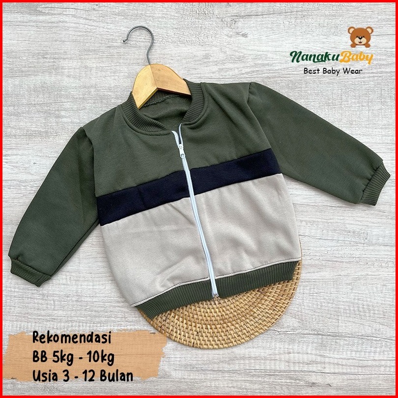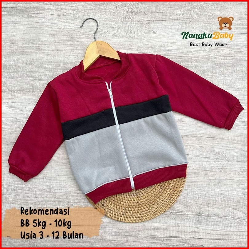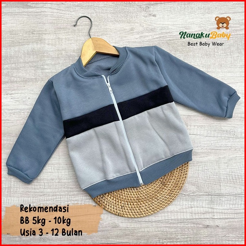 Nanaku Baby - Jaket Bayi Crewneck Usia 3-15 Bulan Jaket Bayi Resleting Mantel Anak Laki Laki Baju Hangat Anak Simple