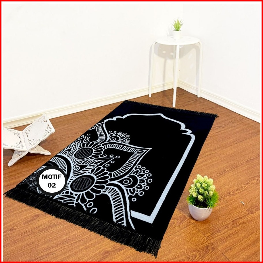 Sajadah Tebal Standart Dan Lembut Khusus Hitam Motif Flowers Premium Murah Ukuran 110x70cm Import Original