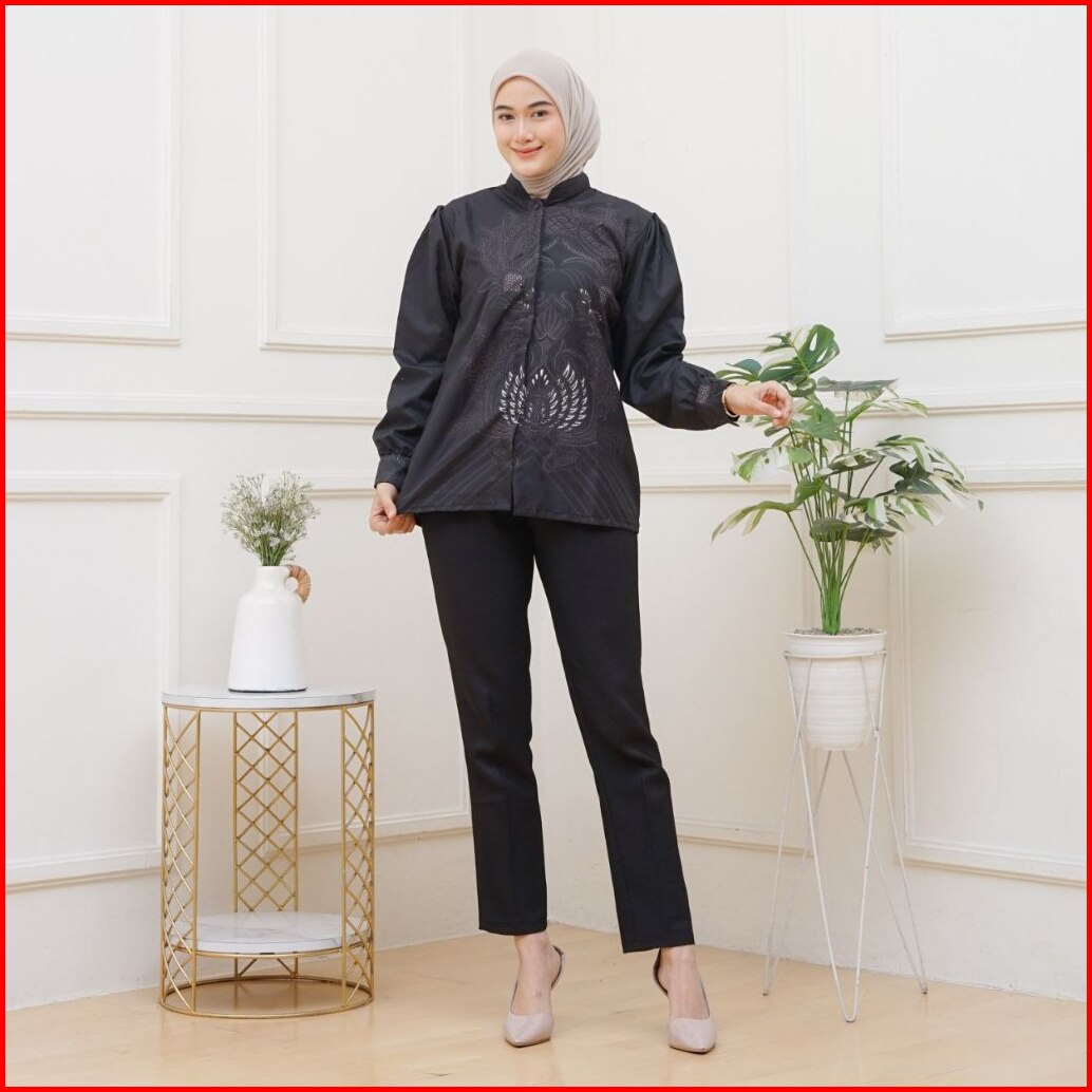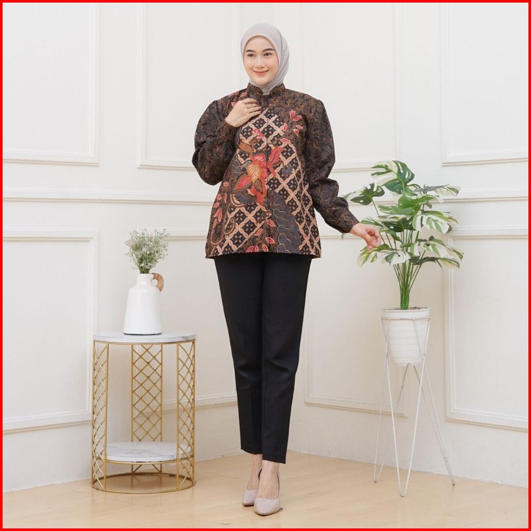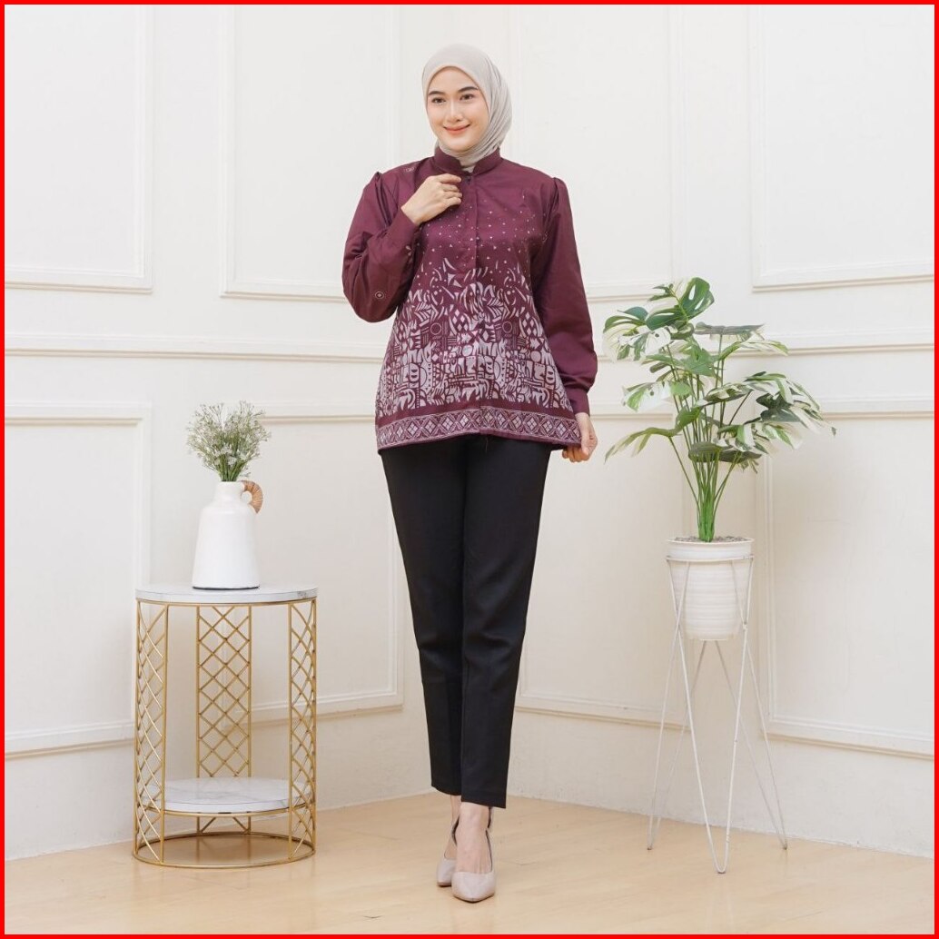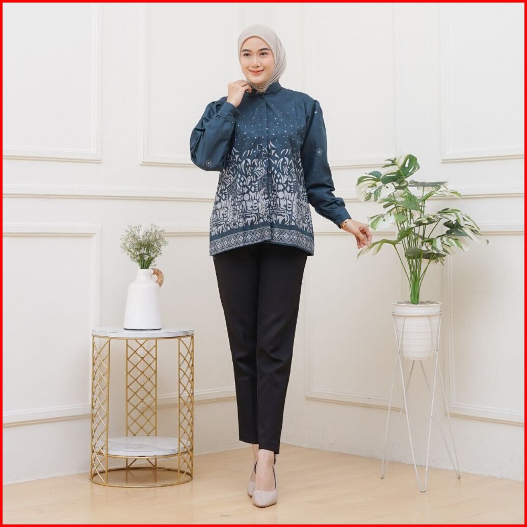 Blus Batik Wanita Kerja Kekinian Murah Full Kancing Kerah Sanghai