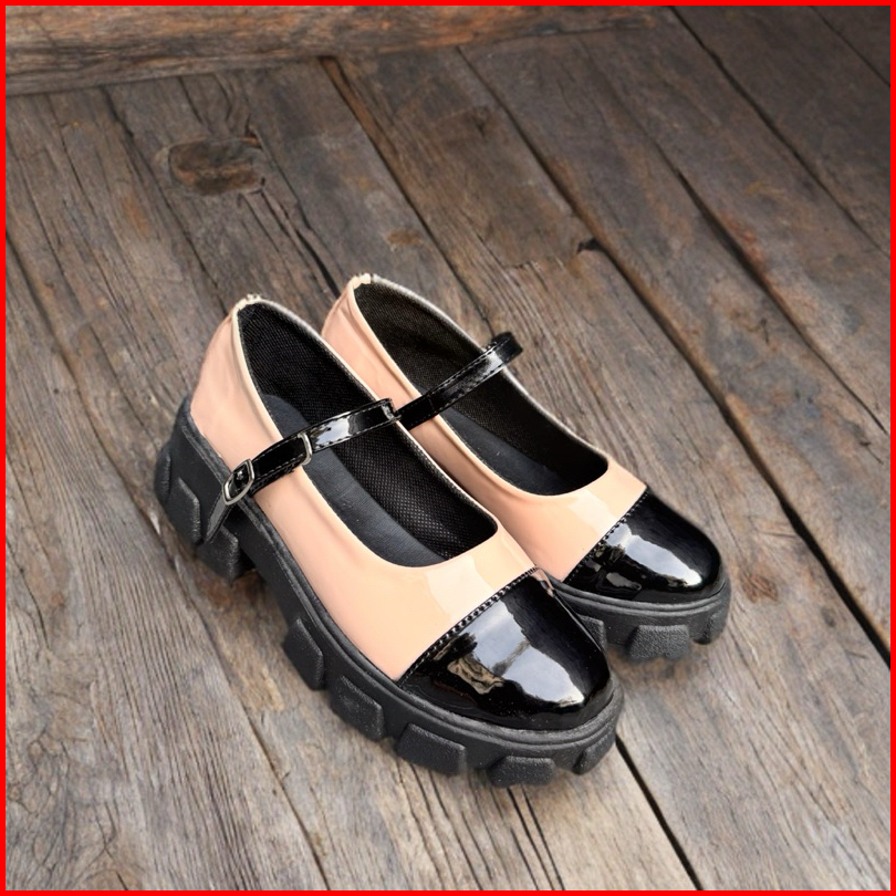 Sepatu Docmart Wanita Yeon Terbaru Fashion Korean Style Premium Quality 1990 Flat Shoes Loafers Kulit Hitam Kekinian Oot