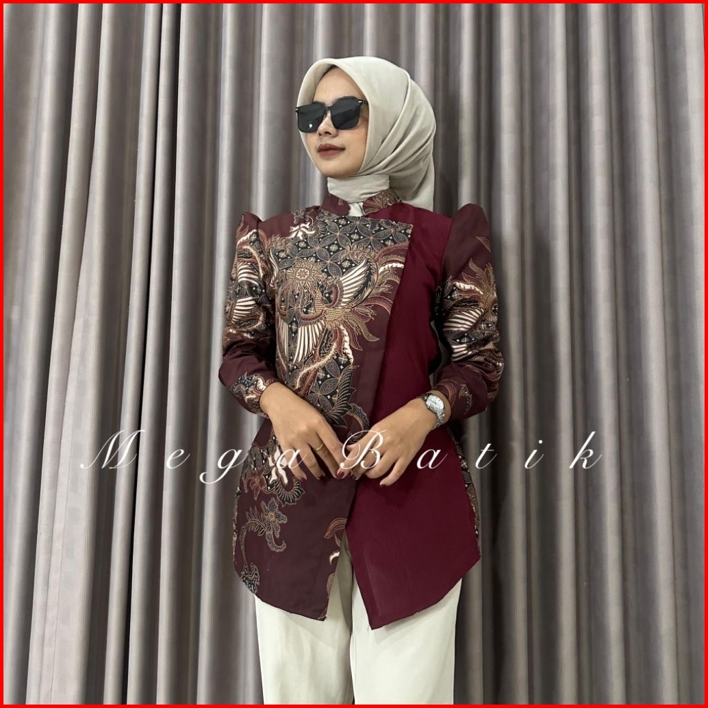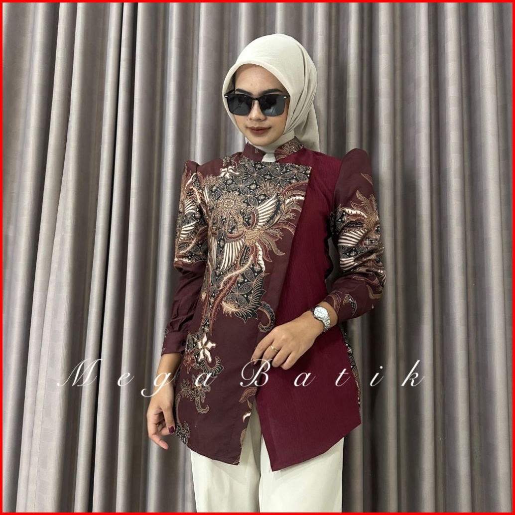 Seayu Bening Atasan Baju Batik Wanita Lengan Panjang Bahan Katun Halus Kombinasi Crincle Lapis Furing - Seragam Batik Ke