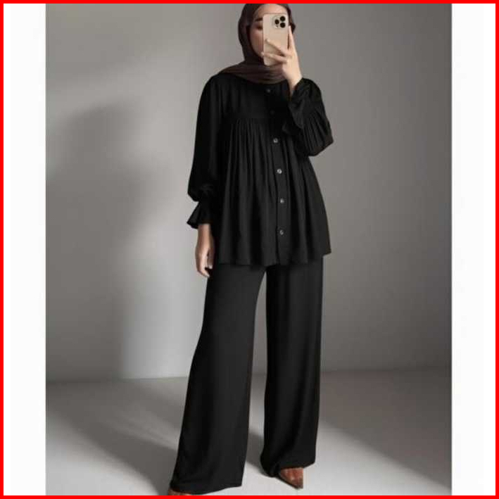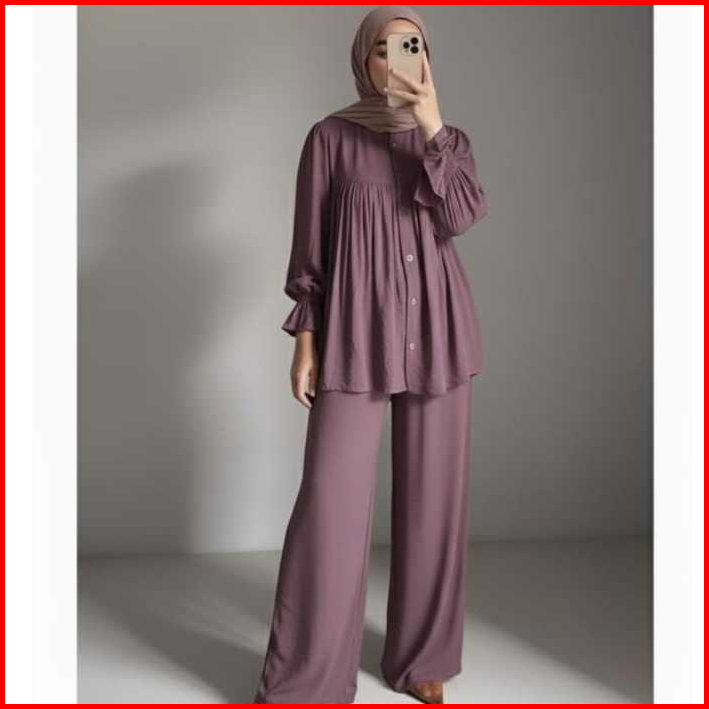 Jena Set Rayon Twill Polos One Set Setelan Wanita Bahan Rayon Twill Polos Jumbo Lengan Puffy