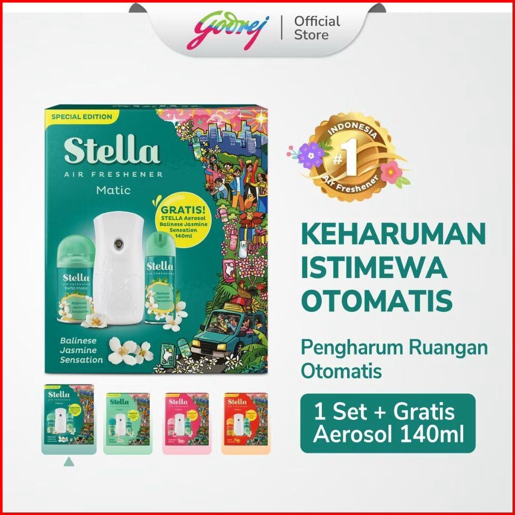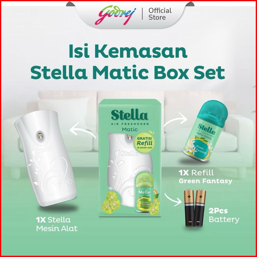 Stella Matic Box Set Isi 1 Alat Refill Green Fantasy - Pengharum Pewangi Ruangan Otomatis Balinese Jasmine Japanese Saku