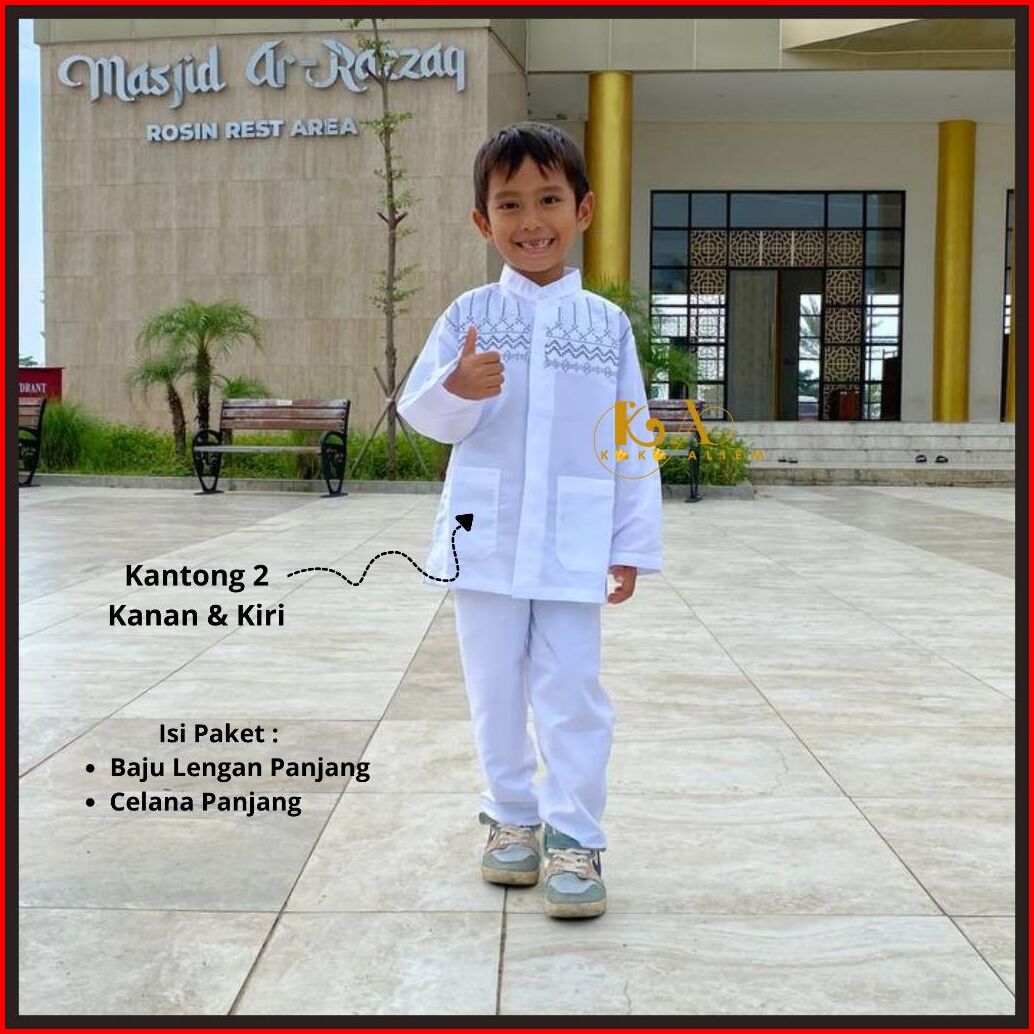 Baju Koko Setelan Anak Warna Putih Cocok Dipakai Untuk Manasik Ibadah Dan Ngaji. Ukuran 2-11 Tahun