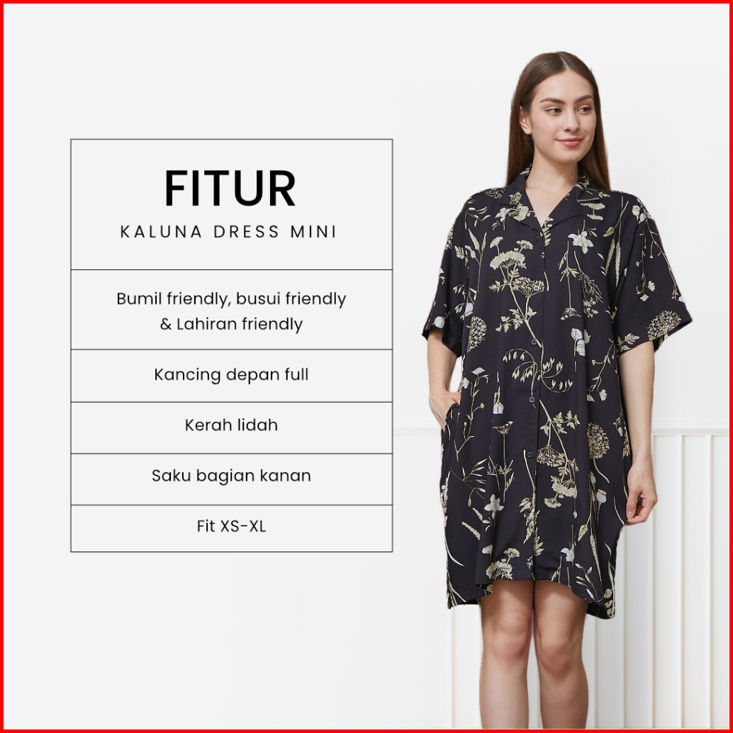 Dyd Label Kaluna Dress Mini Wanita Full Kancing Depan Bahan Rayon Premium Fit To Xl Baju Bumil Busui Lahiran Friendly