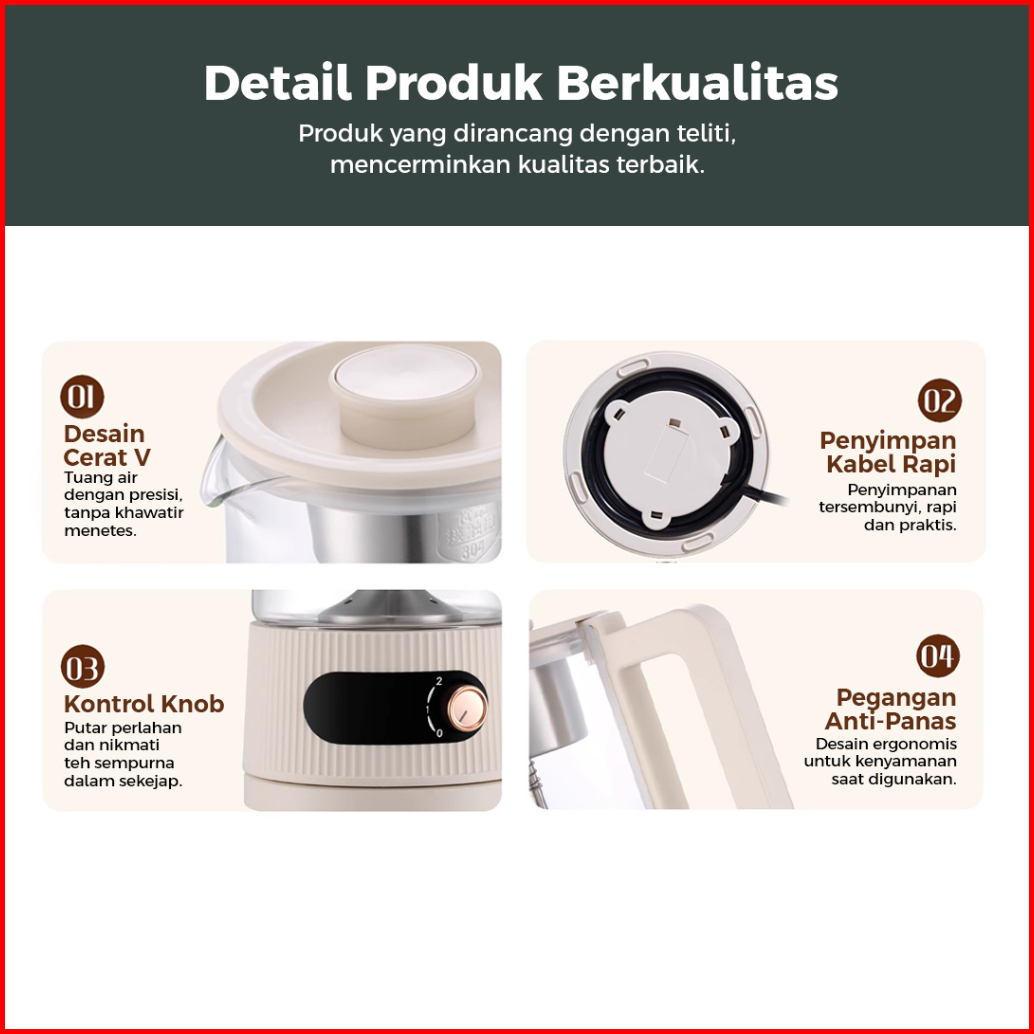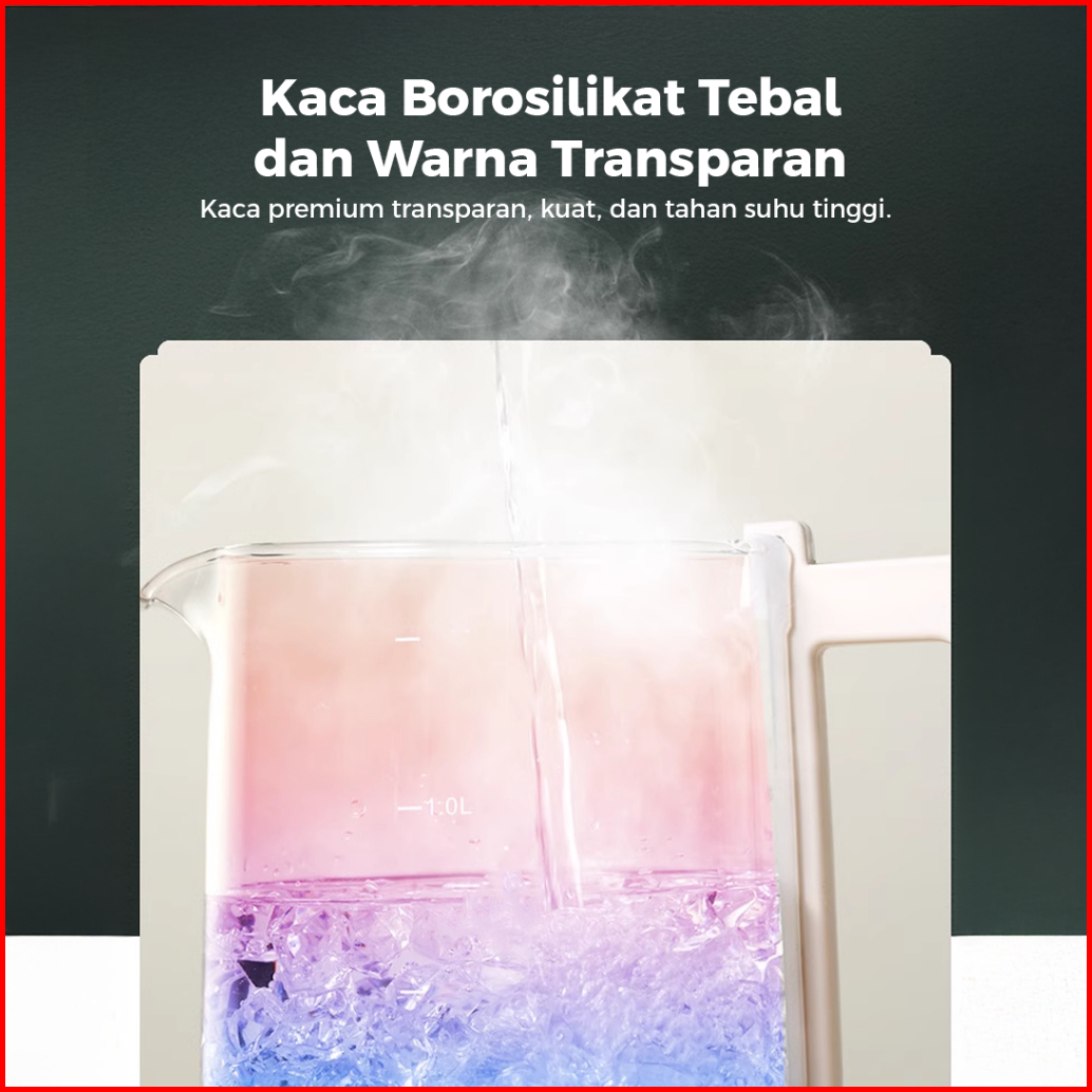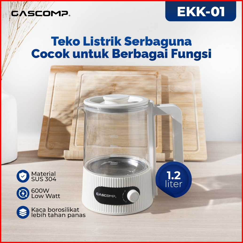 Gascomp Electric Kettle Ekk-01 Gascomp Teko Listrik Kaca Food-grade 1.2l Bahan Kaca Low Watt 600w Aman Untuk Susu Bayi A
