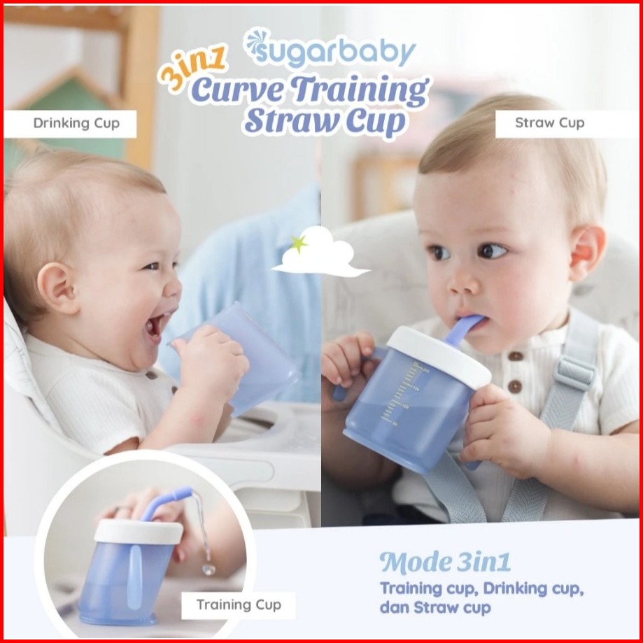Sugar Baby 3in1 Curve Training Straw Cup Gelas Mpasi Bayi Gelas Bayi Anti Tumpah Bocor Training Cup Bpa Free Cbks