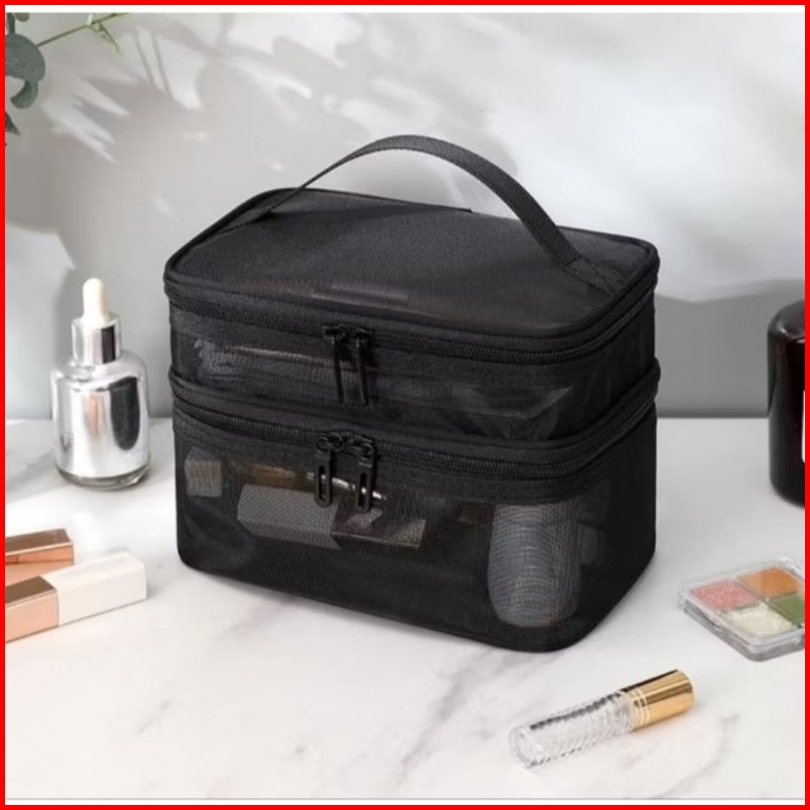 Tas Kosmetik Travel Tingkat Doublel Layer Pouch Kosmetik Transparan