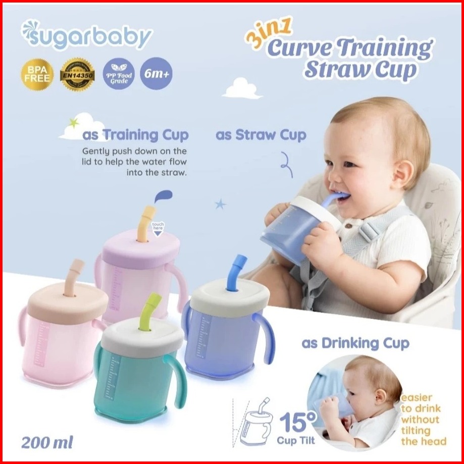 Sugar Baby 3in1 Curve Training Straw Cup Gelas Mpasi Bayi Gelas Bayi Anti Tumpah Bocor Training Cup Bpa Free