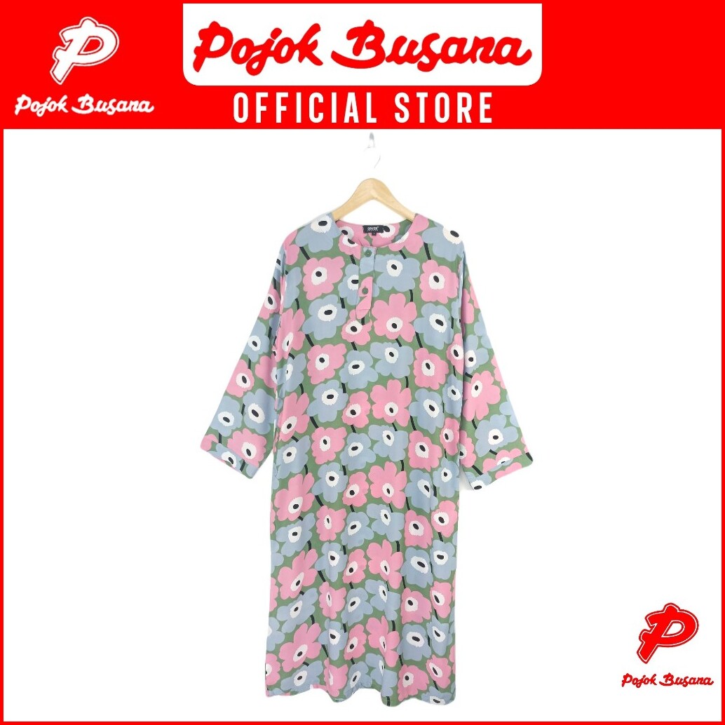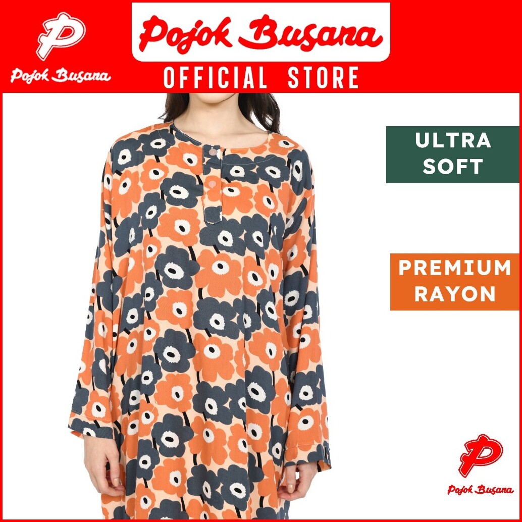 Pojok Busana Cover Daster Lengan Panjang Premium Rayon Wanita - Pakaian Tidur Cewek Halus Soft Ns - Pink