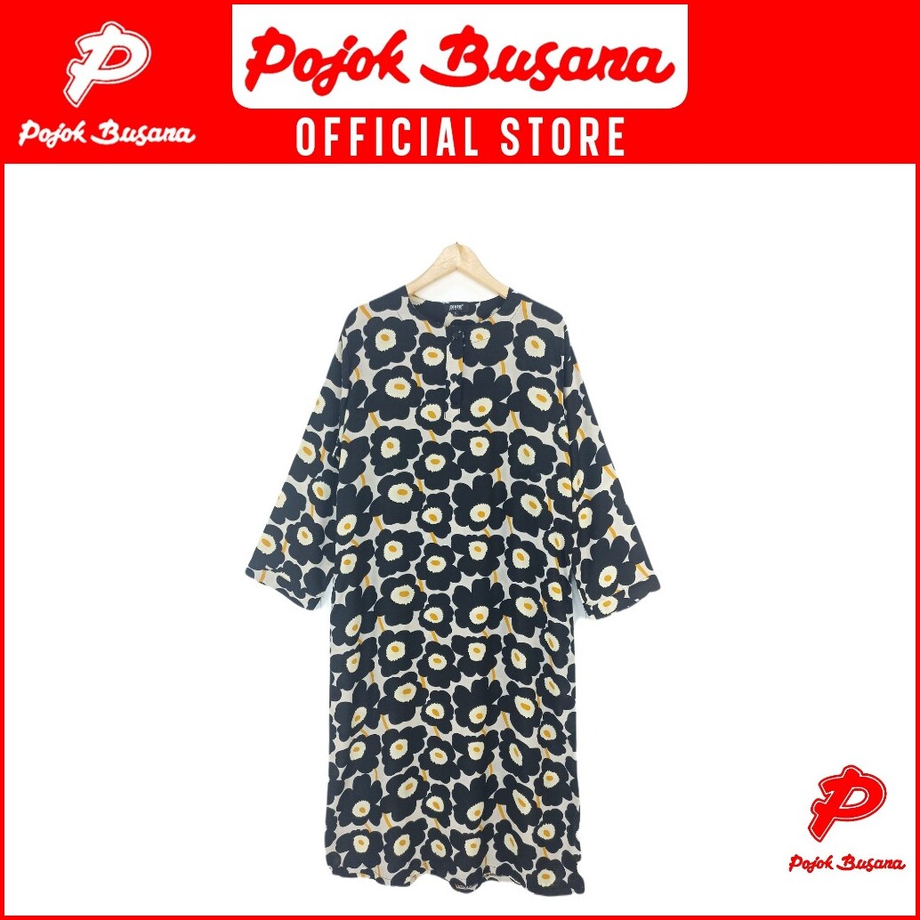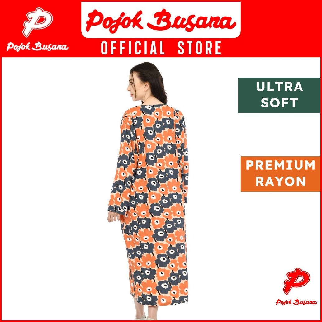 Pojok Busana Cover Daster Lengan Panjang Premium Rayon Wanita - Pakaian Tidur Cewek Halus Soft Ns - Hitam