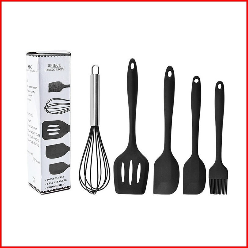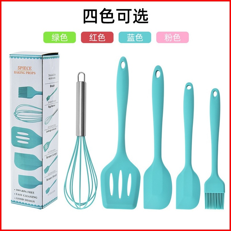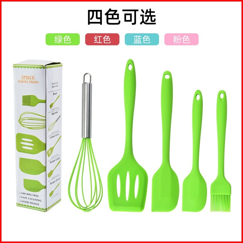 Spatula Set Alat Masak 5 In 1 Sutil Scrap Kocokan Silicone Silikon - Pink Hitam Biru Hijau