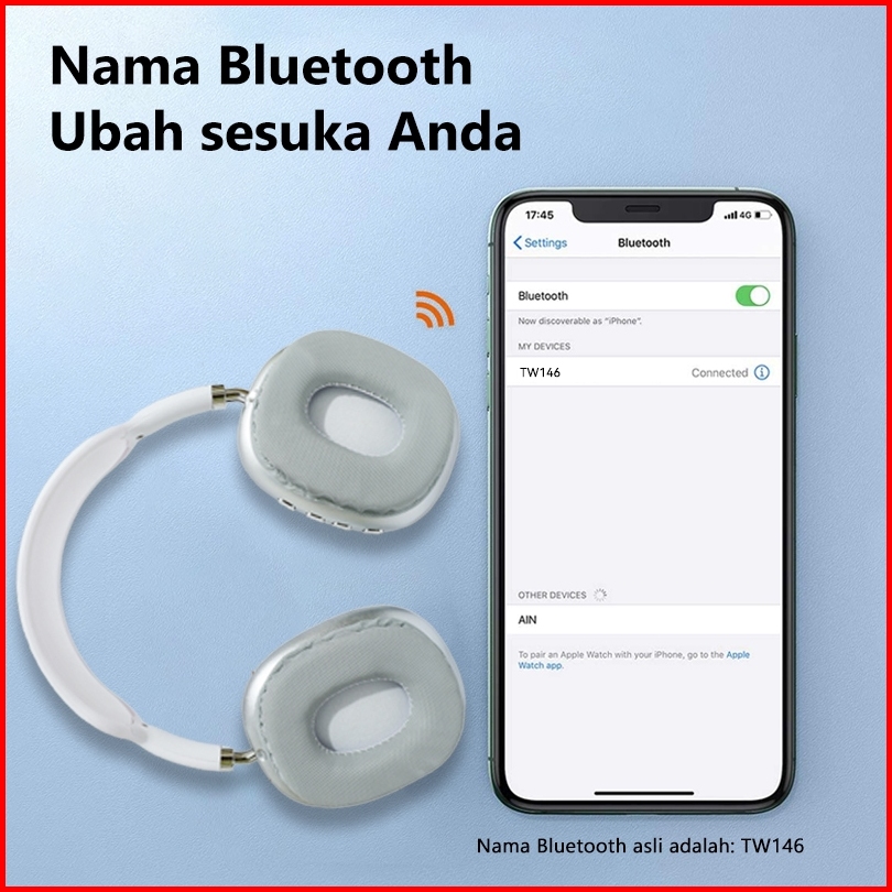 Hot Aston Headphone Bluetooth Wireless At-tw146 Silver Super Bass Hifi Stereo Earphone Original