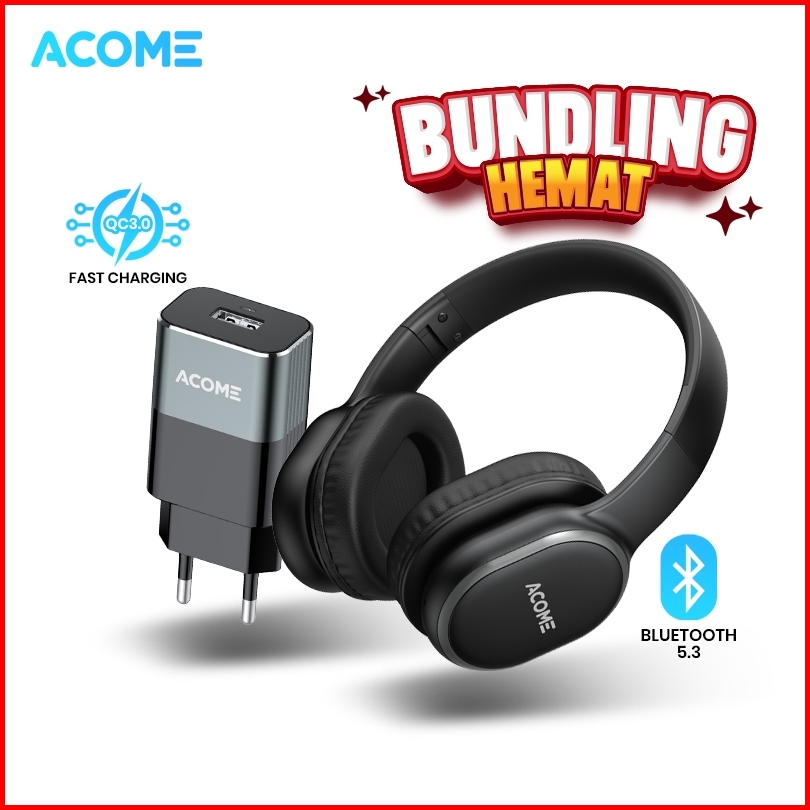 Acome Bundling Headphone Tune H2 Bluetooth 5.3 Charger Ac01 3a Fast Charging Original - Garansi Resmi 1 Tahun