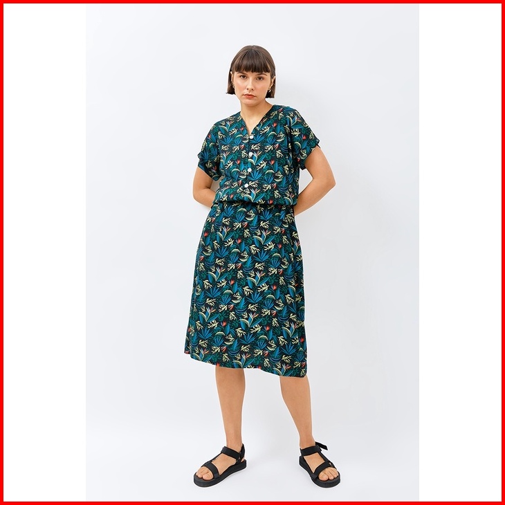 Daster Wanita Rayon Sare Studio Sleepwear Buni Cinched Dress In Black Paradise
