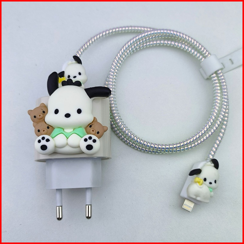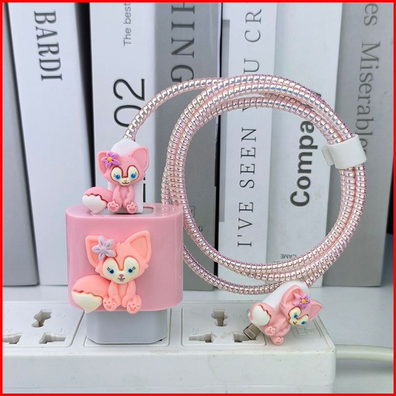 Cute 3d - Set Paket Cover Pelindung Kepala Kabel Charger Spiral Cable Set Protector - Compatible For Iphone Android