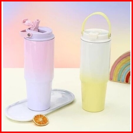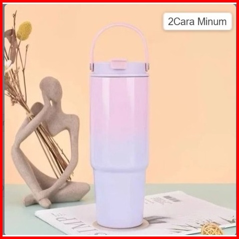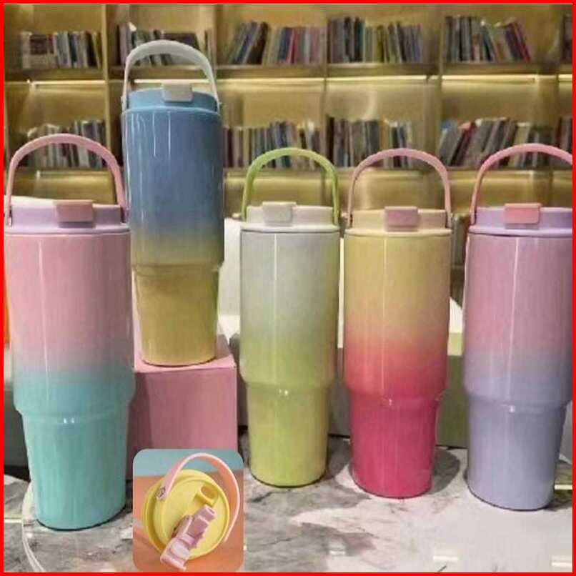 Tumbler Gradasi Macaroon With Handle 900ml Termos Tumbler Dengan 2 Cara Minum Stainless Steel Sus 304 Tumbler St4099