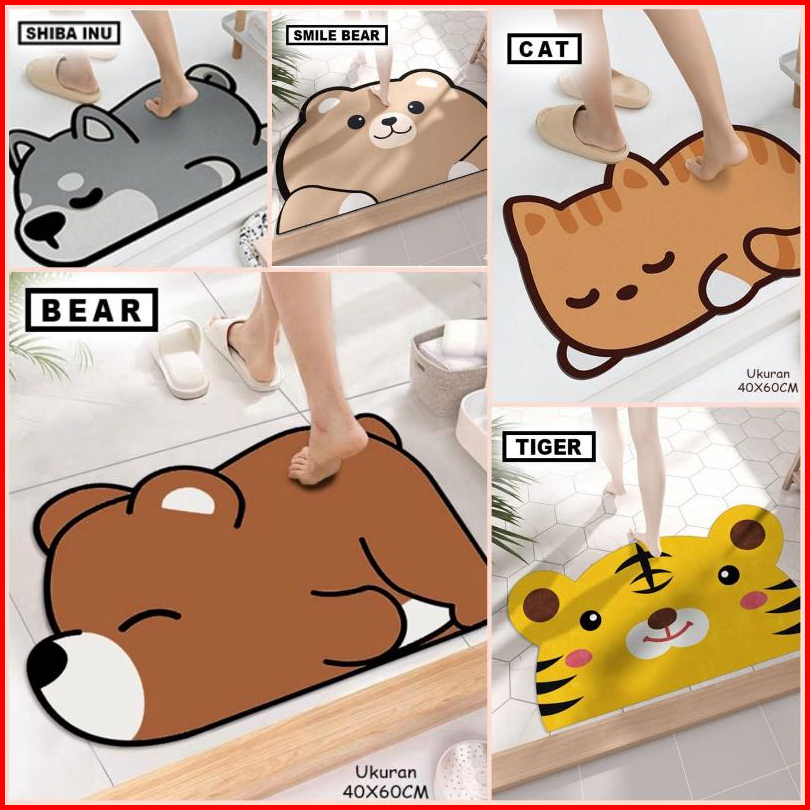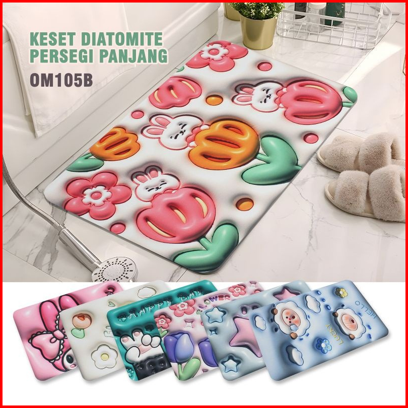 Diatomite Keset Kaki Serap Air Anti Slip Lantai Kamar Mandi Dapur Keset Kaki Diatomite Persegi Motif Gambar 3d Lap Kaki