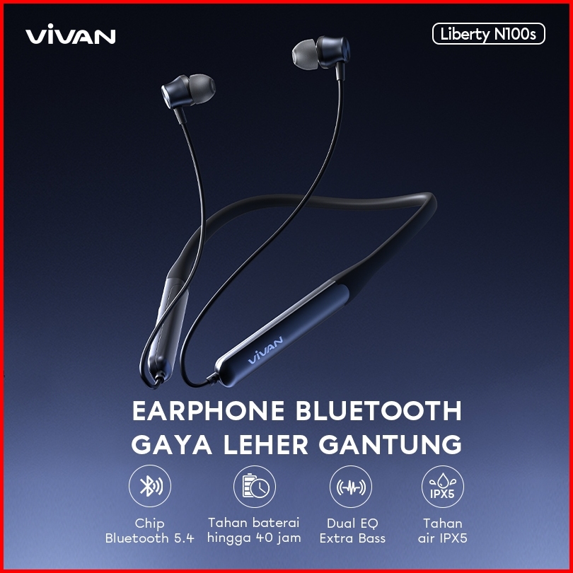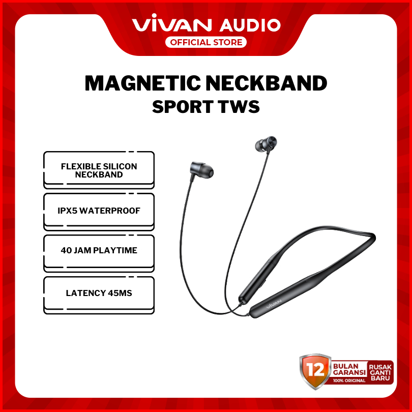 New Vivan Sport Tws Neckband 40h Playtime Low Latency Extra Bass Ipx5 Liberty N100s Garansi 12 Bulan