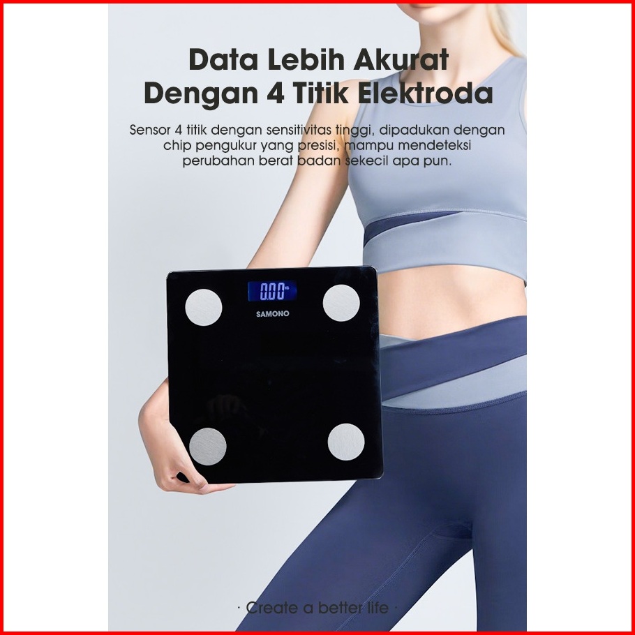 Samono Timbangan Badan Digital Bmi Lemak Tubuh 180kg Dengan Aplikasi Bluutooth Analisa Tubuh Body Fat Sw-bs04