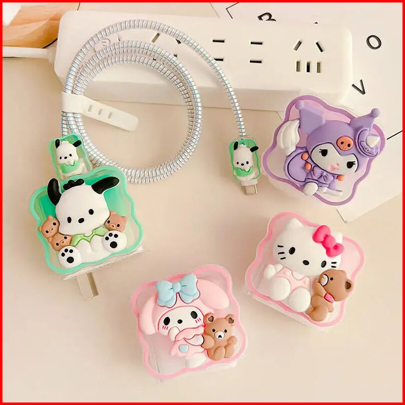 For Realme 33w 45w 15w 65w 67w 80w 100w Casing Pelindung Charger Set 5in1 Protector Adapter Kabel Data Kartun Animasi Lu
