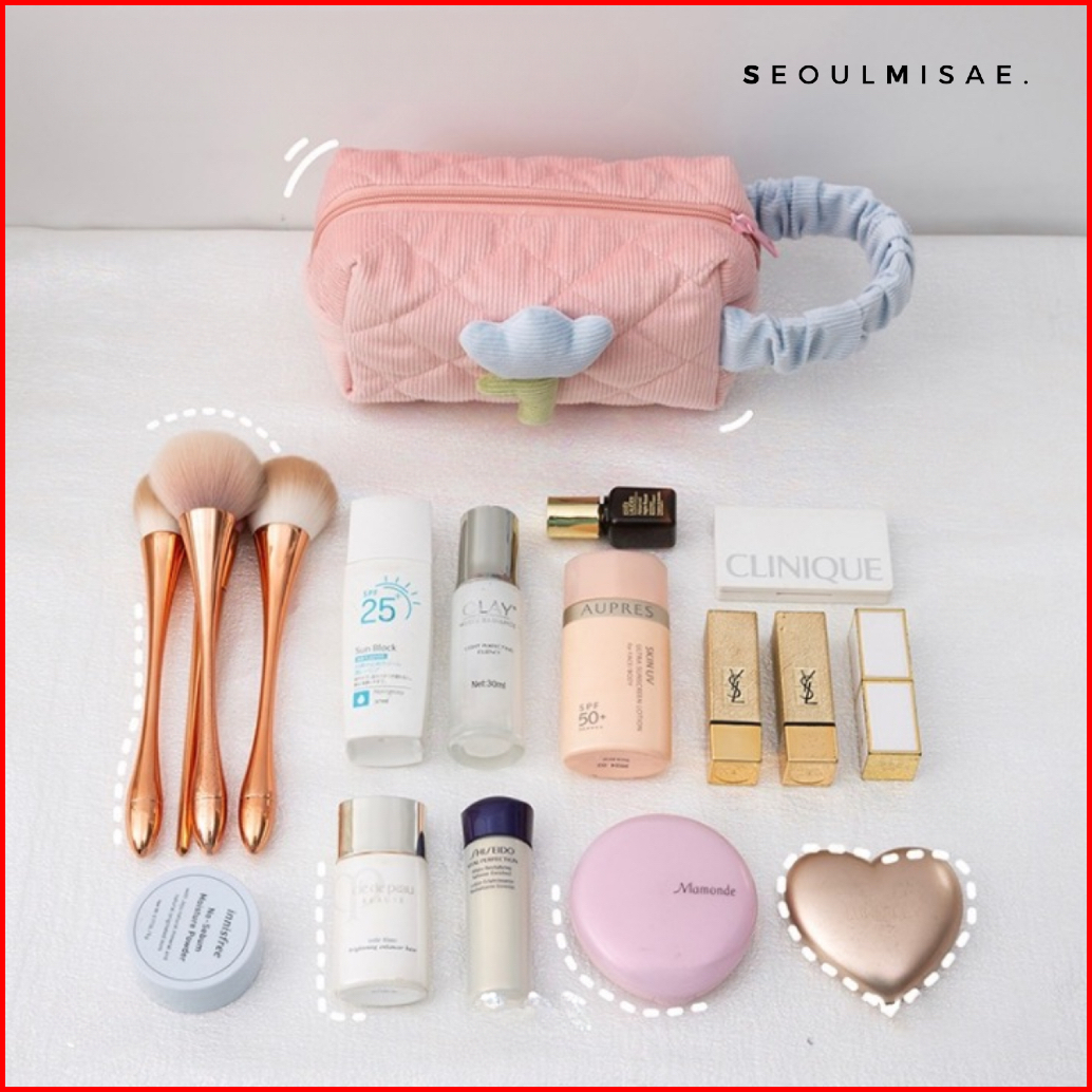 Seoulmisae - Joyeon Pouch Makeup Flower Tas Puffy Kosmetik Wanita Tebal Imut