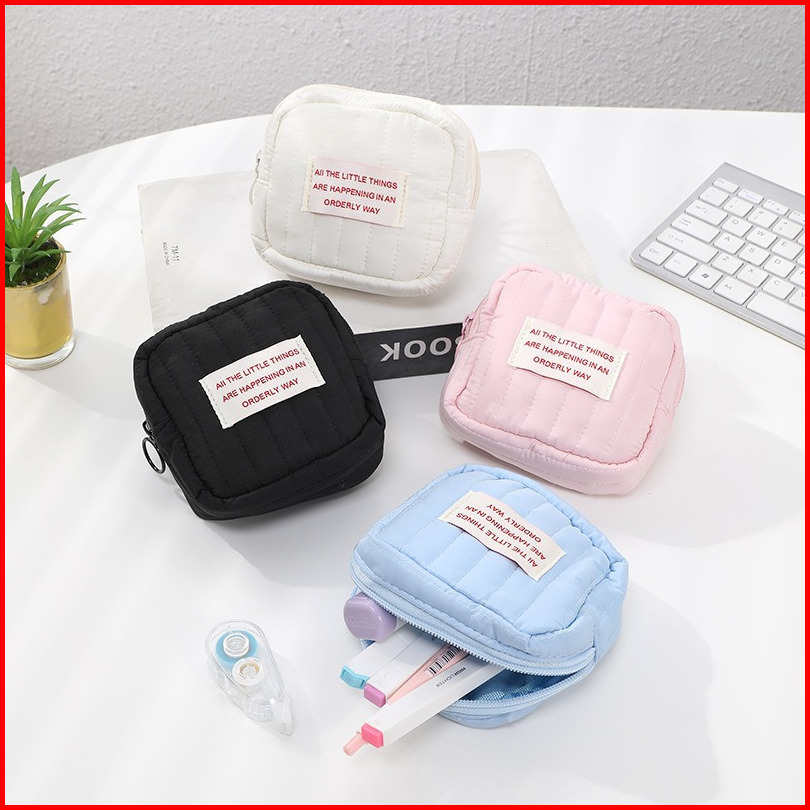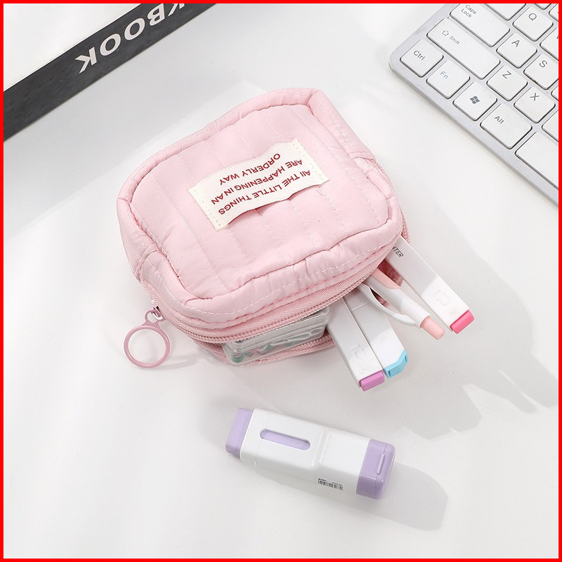 Pouch Puffy Mini Simple Portable - Organizer Perjalanan Kantor Multifungsi - Tempat Lipstik Parfum Mini Pensil Lucu - Ma