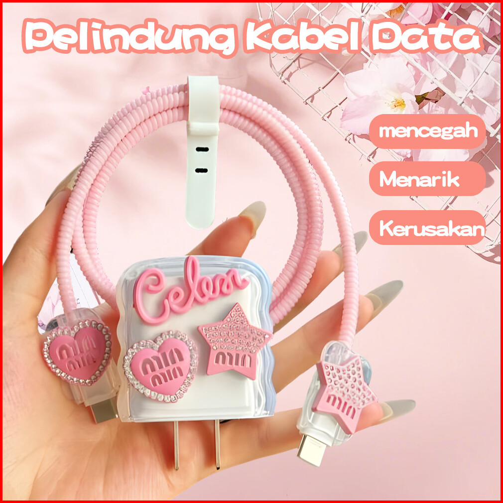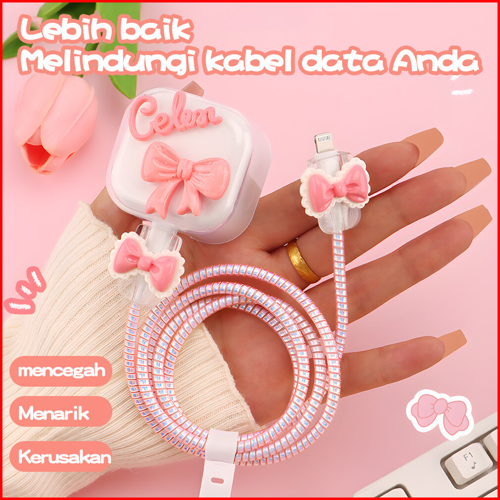 Cyberland 1 Set 5 Pcs Cute 3d Paket Cover Pelindung Kabel Charger Cable Protector Spiral Set Case Charger Compatible For