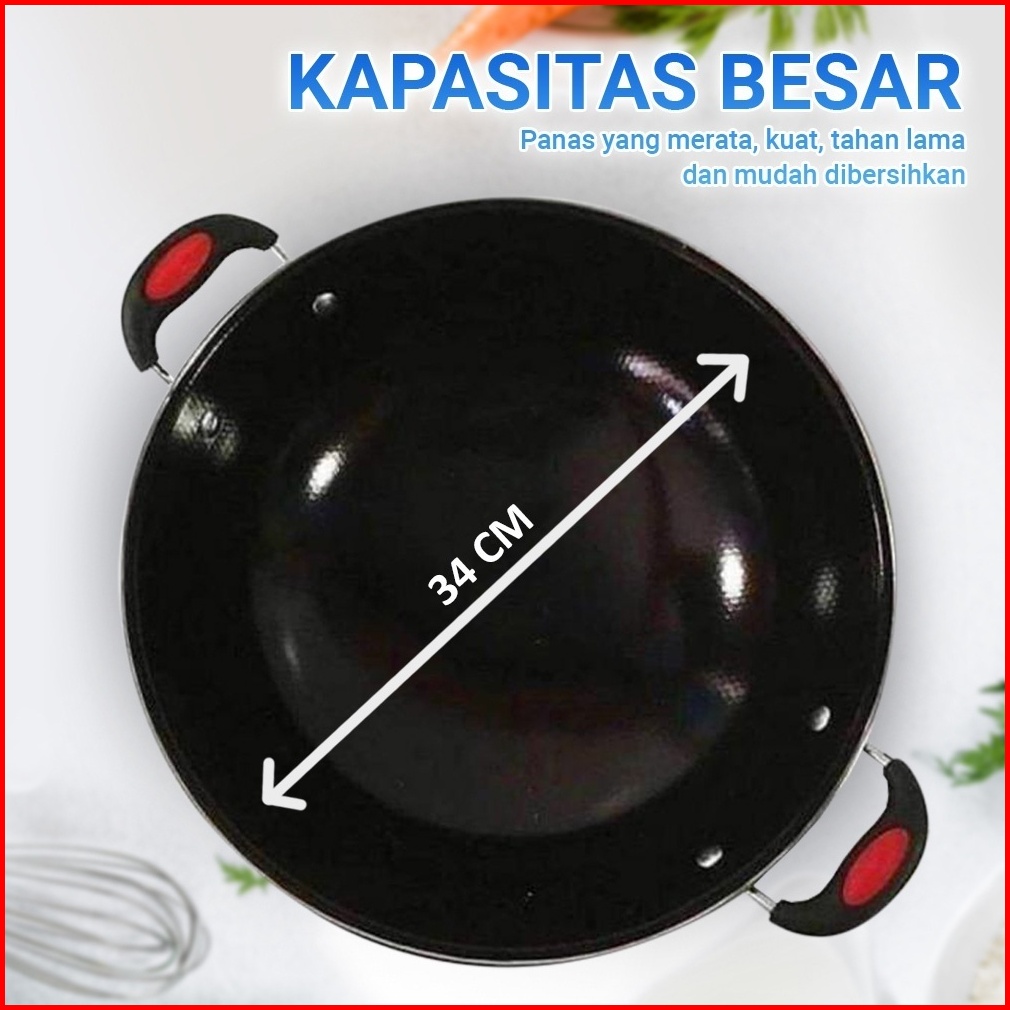 Wajan Anamel Kuping 32cm 34cm Wajan Anti Lengket Penggorengan Kuali Wok