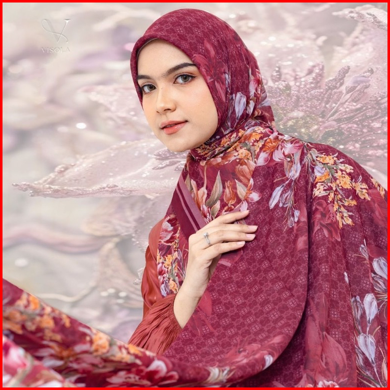 Visola Flora Inferno Scarf Hijab Premium Motif Bunga - Hijab Segi Empat Premium With Box