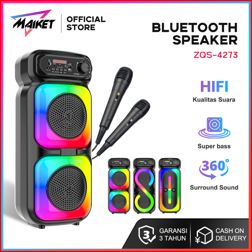Maiket Speaker Karaoke Bluetooth 5.3 Outdoor 10w 4 Inch Super Bass Portable Salon Usb Fm Aux Rgb