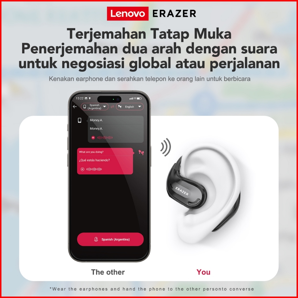 Lenovo Erazer Xt66pro Terjemahan Suara 135 Bahasa True Wireless Bluetooth Headset V5.4 Ows Sport Earphone Bass Hifi Anti