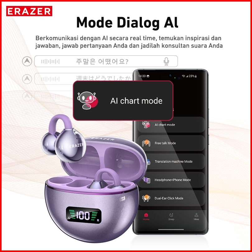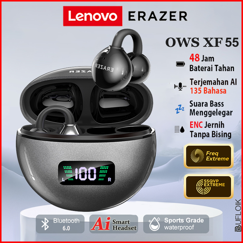 Lenovo Erazer Xf55 Tws Bluetooth Full Bass Headset Bluetooth Wireless Earphone Ows Gaming Hifi Stereo Ear Clips Led Powe