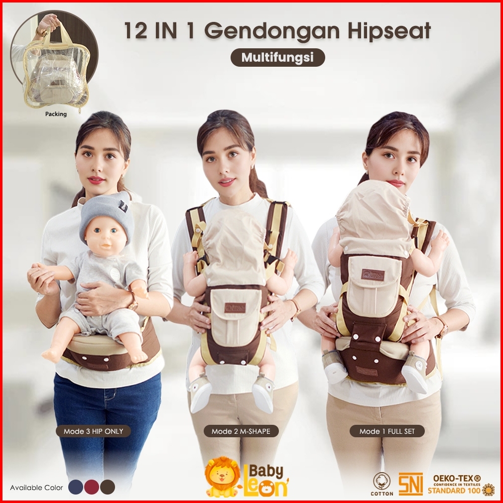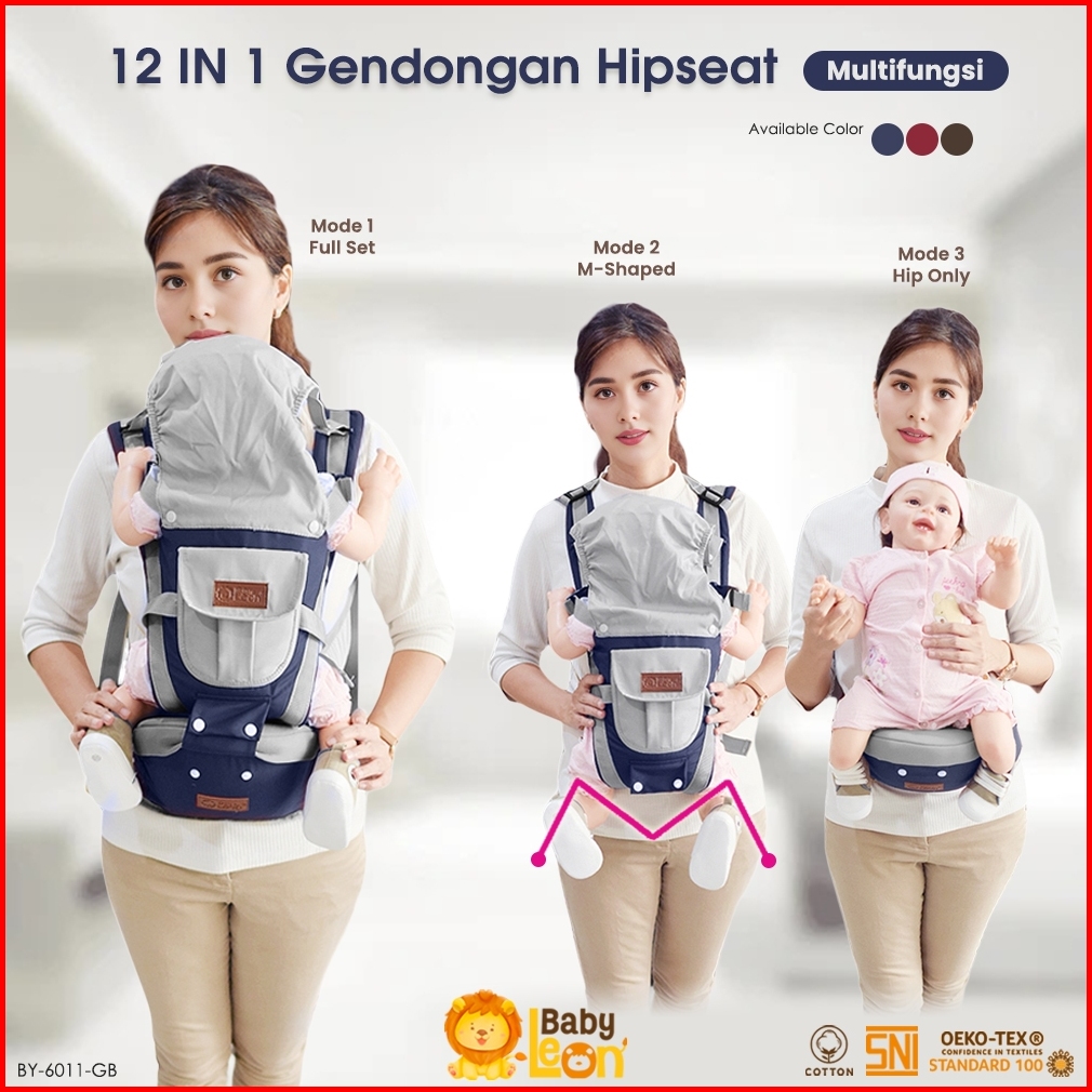 Baby Leon Gendongan Depan Terbaru Hipseat Gendongan Bayi Depan Penutup Kepala Gendongan Multifungsi By-6011