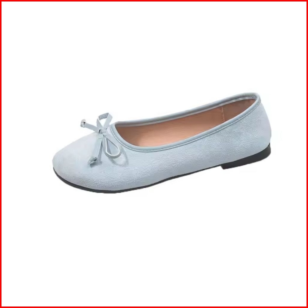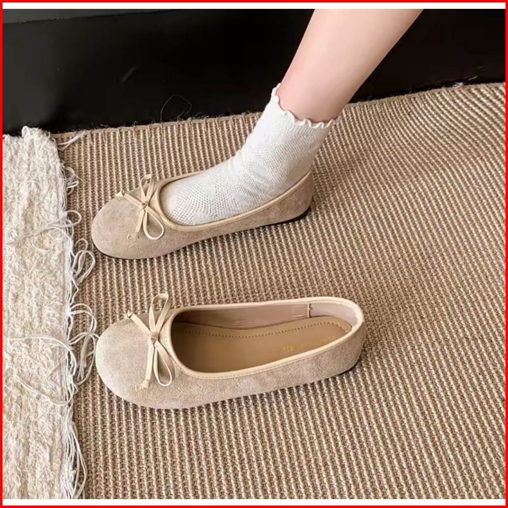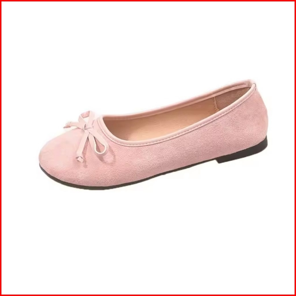 Flat Shoes Wanita Balerina Suede Lucu Sepatu Cewek Casual Model Pita Warna Pastel Kerja Coklat Karet Pink