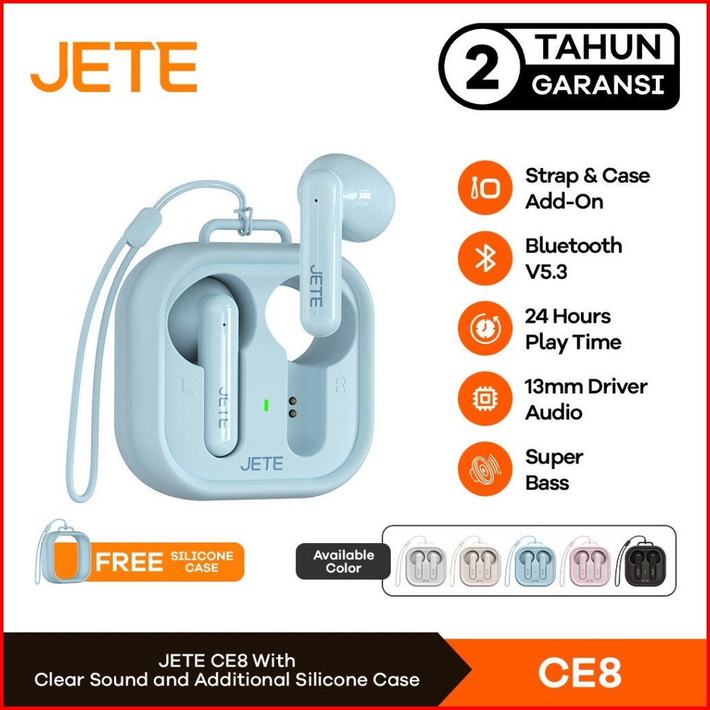 Tws Jete Ce8 Bluetooth Earbuds Macaron Bt 5.3 Super Bass 24 Hours Playtime - Garansi 2 Tahun
