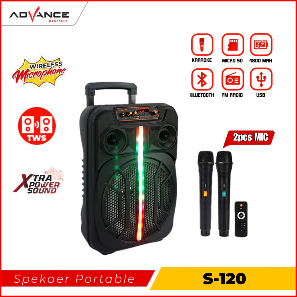 Advance Speaker S-120 Bluetooth Music Karaoke 12inch Free Mic