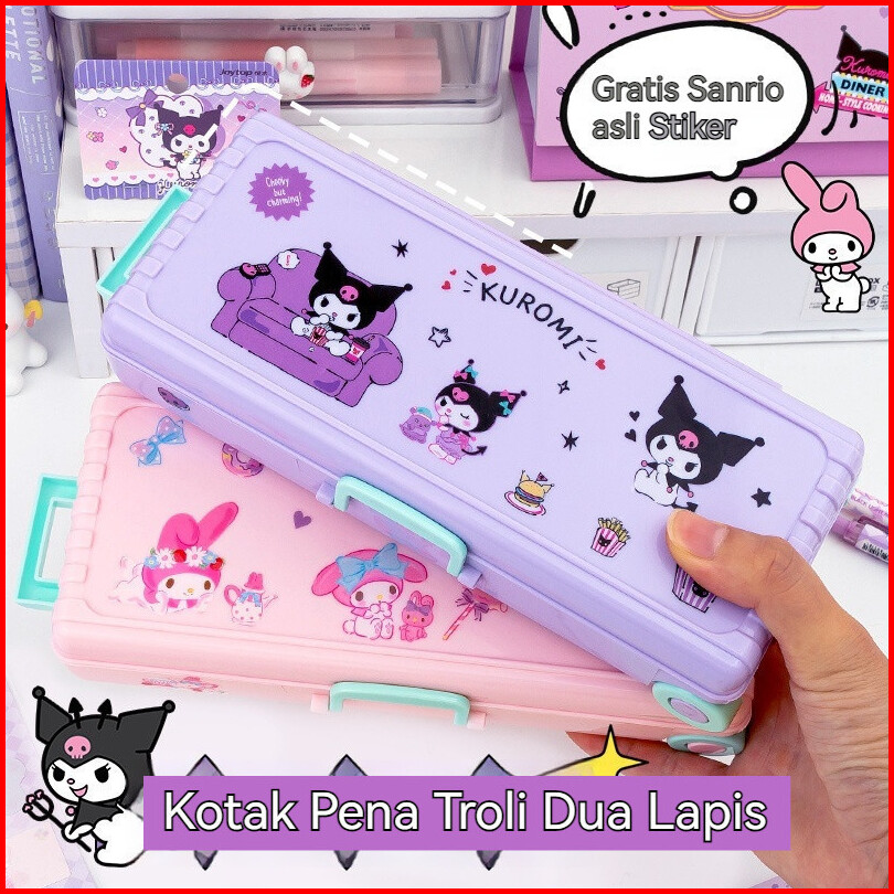 Codkotak Alat Tulis Berbentuk Kotak Troli Lucu Dengan Stiker Lapisan Ganda Kotak Pensil Plastik Kapasitas Besar Hadiah A