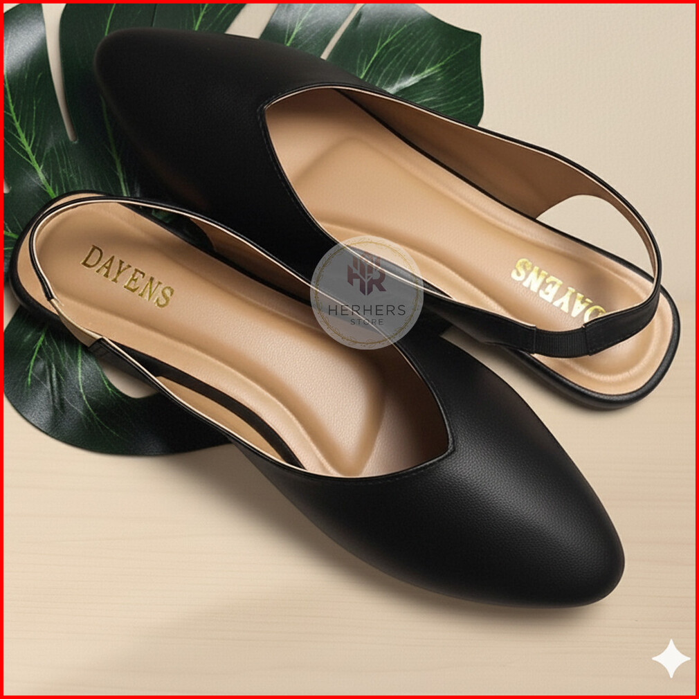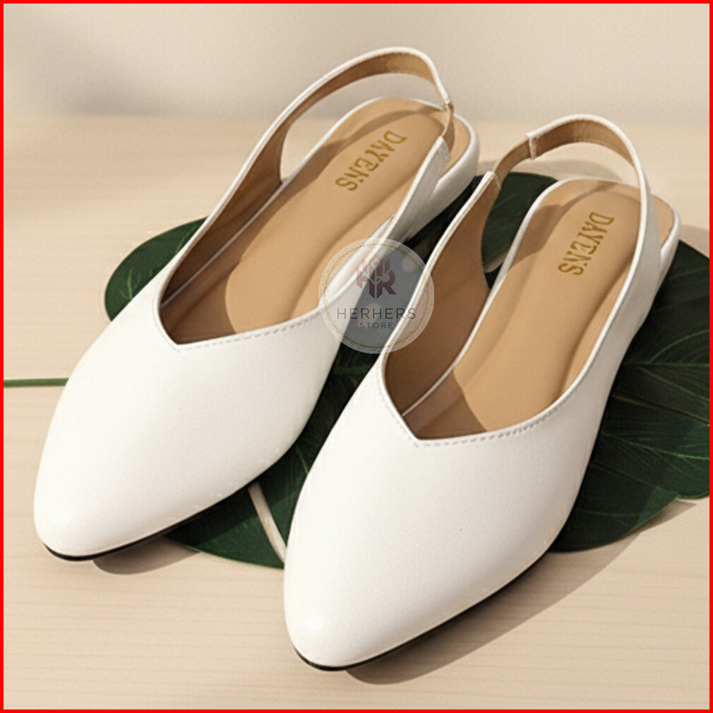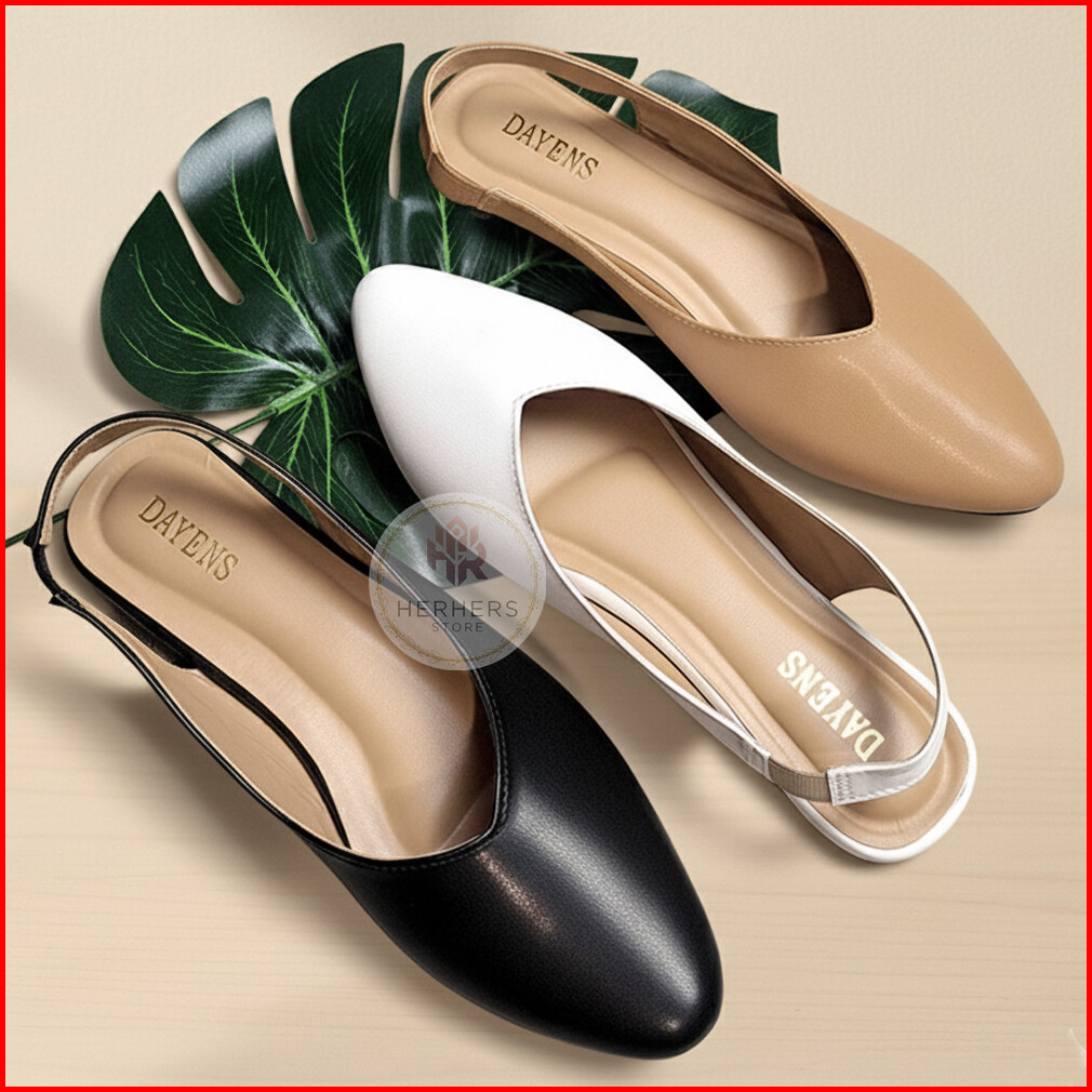 Sepatu Flat Wanita Kerja Flatshoes Cewek Simple Kekinian Empuk Nyaman Tali Slop Kantor Terbaru Hitam Putih Coklat Casual