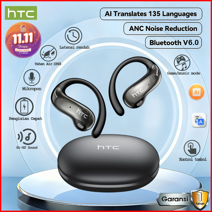 Promo Hari Ini New Htc Ne19 Ai Bluetooth 6.0 Headset Peredam Bising Nirkabel Bass Tahan Air Headset Bicara Hd Olahraga P