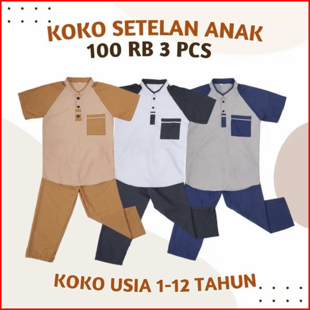 El Vano - Setelan Baju Koko Anak 100rb 3pcs Kurta Anak Laki Laki Usia 1 - 13 Tahun Terbaru Kekinian