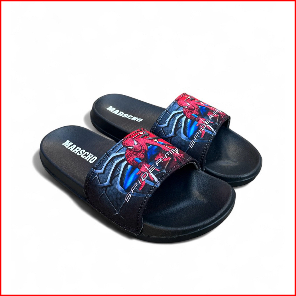 Sandal Slop Anak Laki-laki Karakter Spider Kulit Sintetis