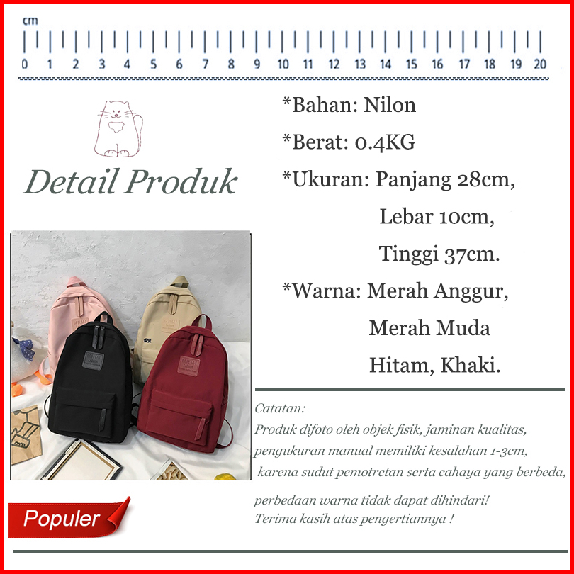 Ready Hot Tas Ransel Wanita Anak Tas Sekolah Sma Remaja Perempuan Aesthetic Pria Tas Ransel Wanita Korean Nilon Backpack