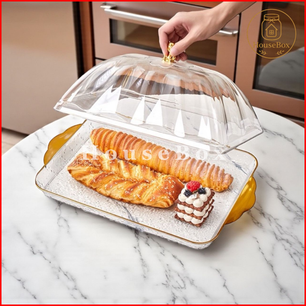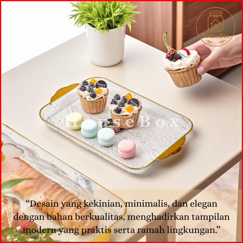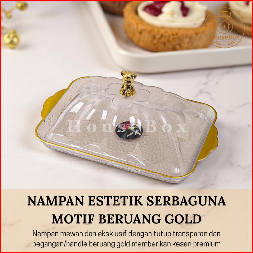 Housebox Nampan Saji Aesthetic Mewah Serbaguna Dengan Tutup Motif Beruang Kotak Tempat Saji Kue Snack Roti Buah Dessert