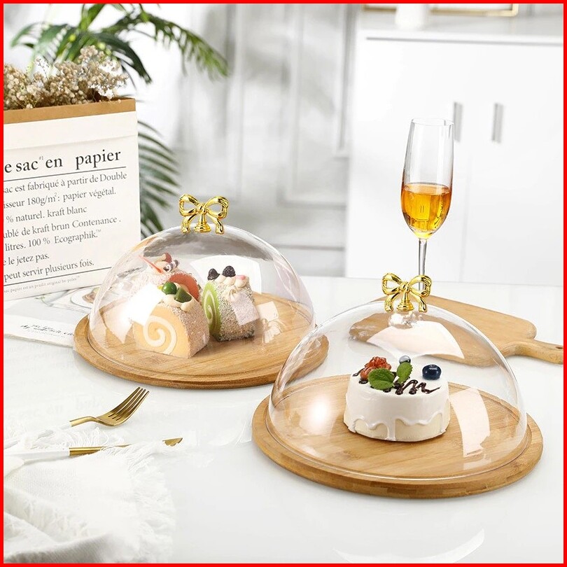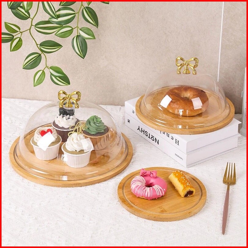 Kayu Bamboo Tempat Kue Pulang Nampan Pencuci Mulut Mewah Penutup Kue Transparan
