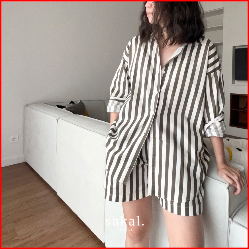 Sakal Cotton Stripes Set Wanita Jumbo All Size