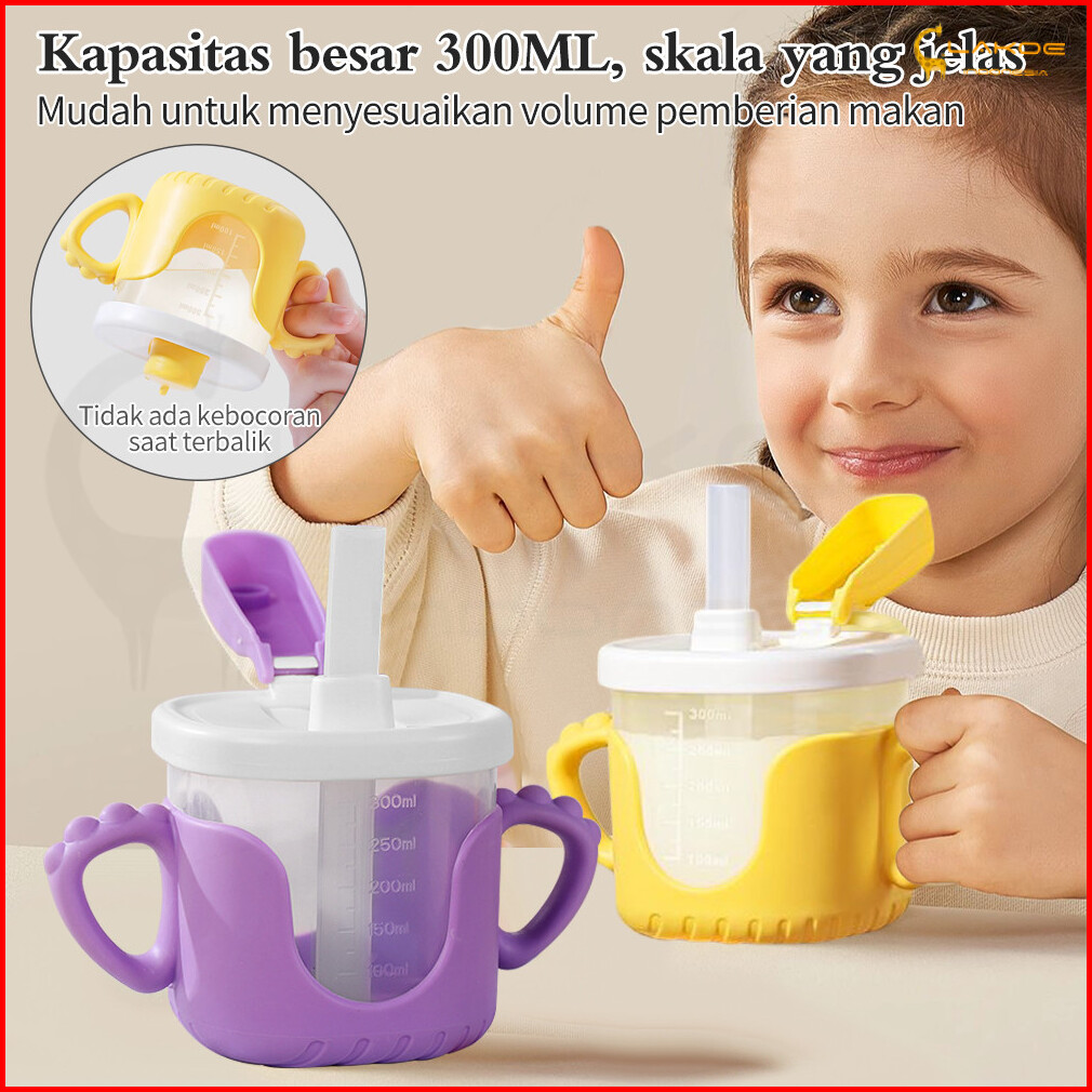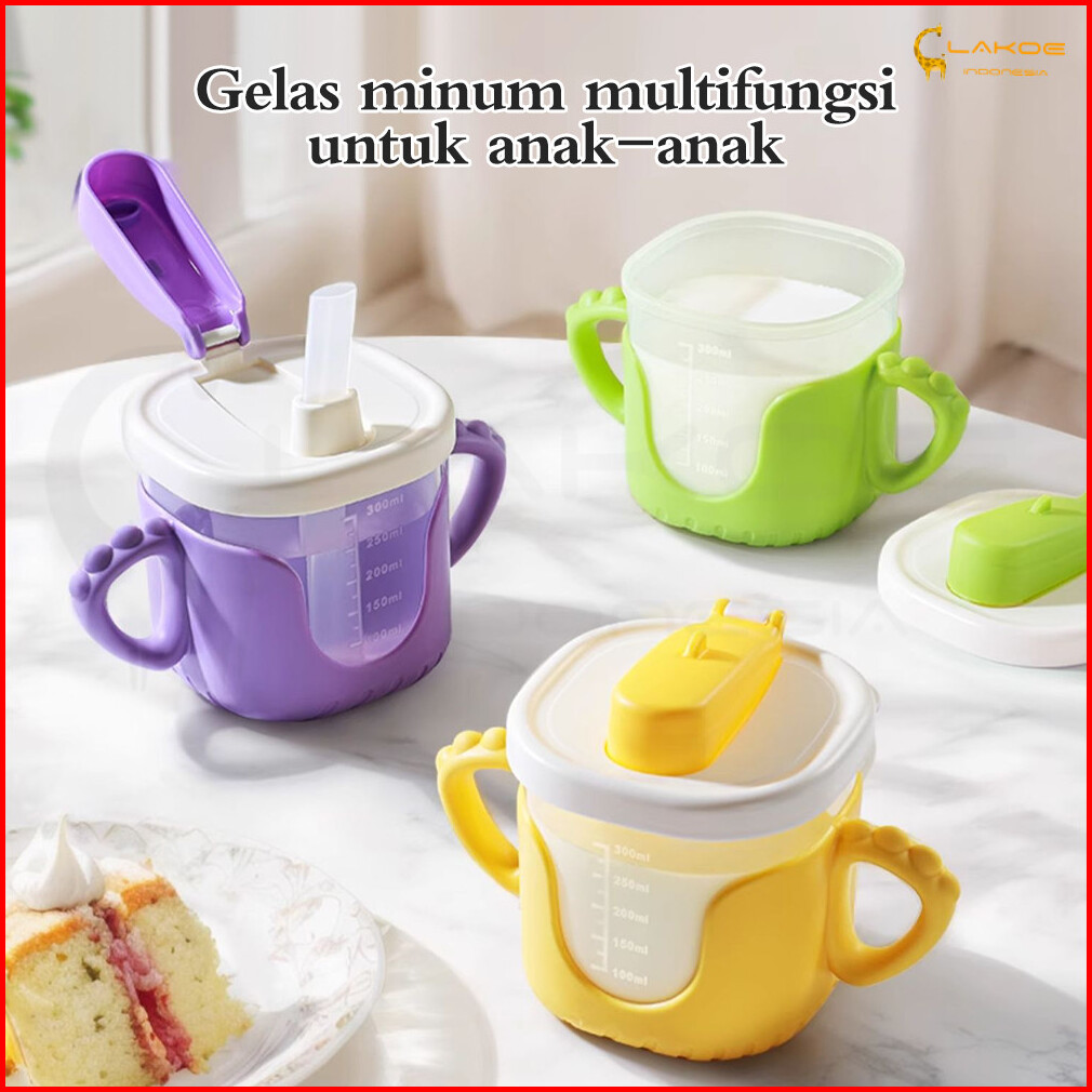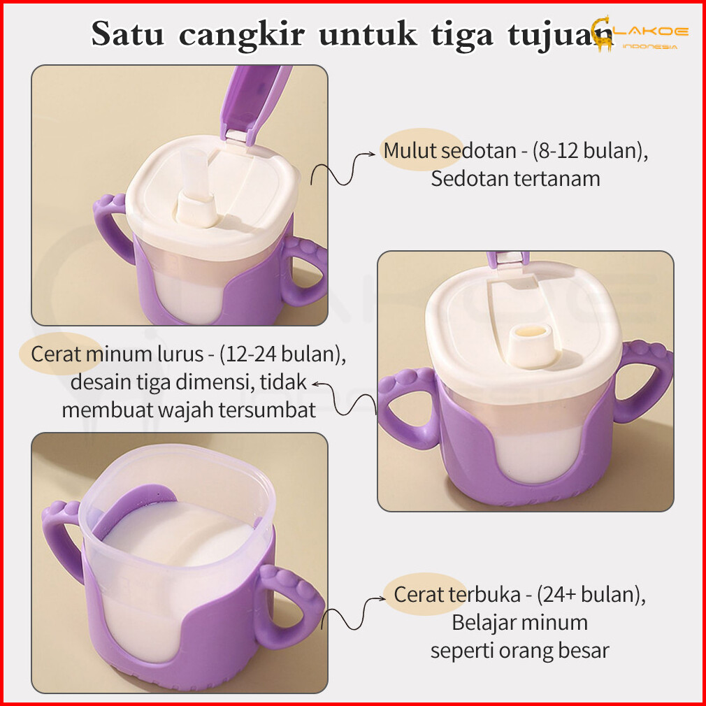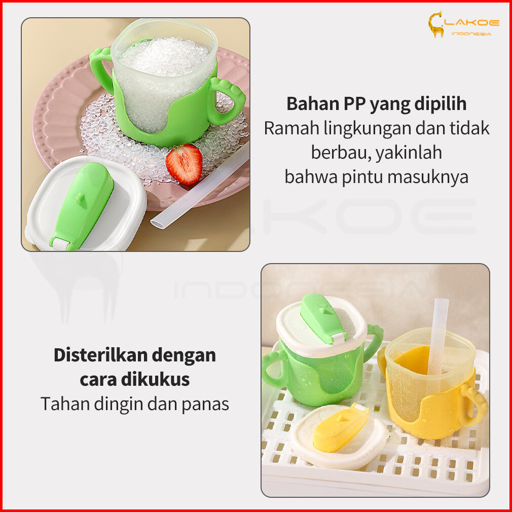 Lakoe Training Cup Bayi Anti Tumpah Gelas Bayi Botol Minum Balita Sedotan Silikon 300ml Bpa Free