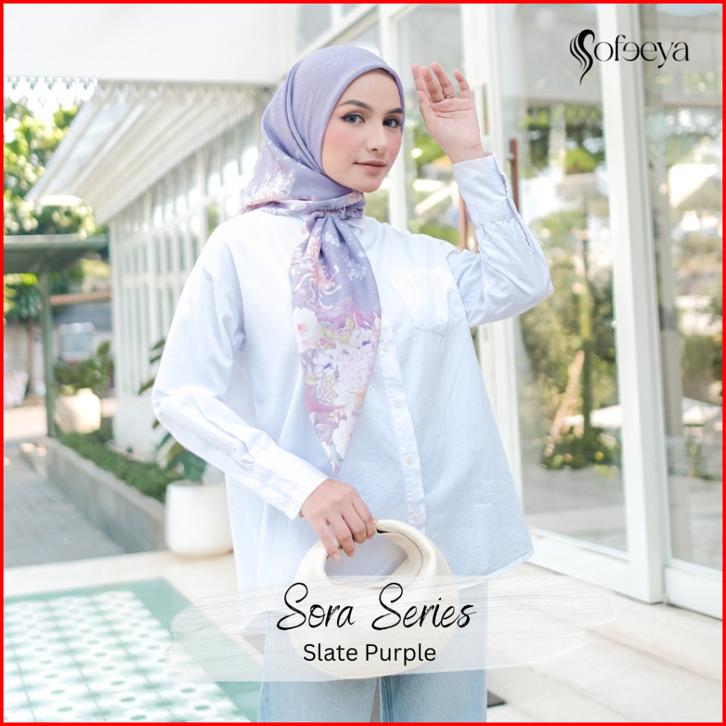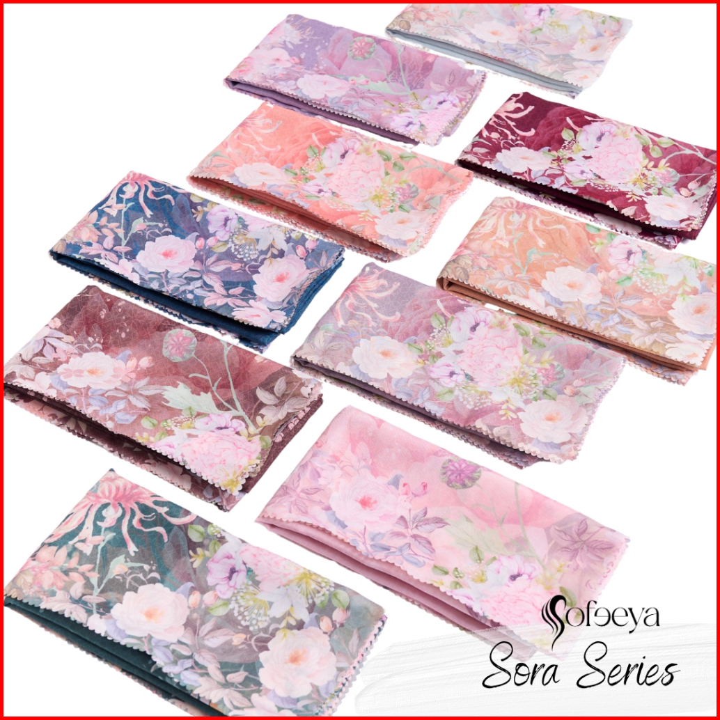Sofeeya - Hampers Hijab Segi Empat Kerudung Voal Printing Motif Sora Series Soft Box Jilbab Ukuran 110 X 110 Cm Kerudung