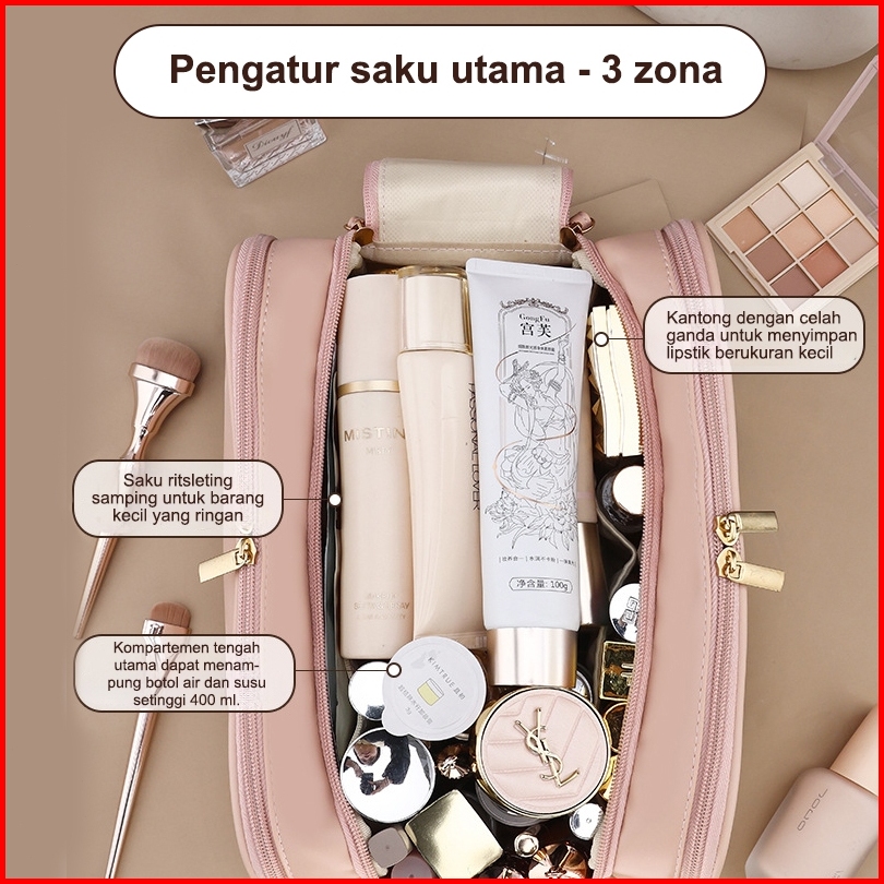 Pinkbubbly.ready-tas Kosmetik Travel Cosmetic Bag Organizer Tas Make Up Wanita Tas Make Up Portabel Tas Riasan Ritsletin